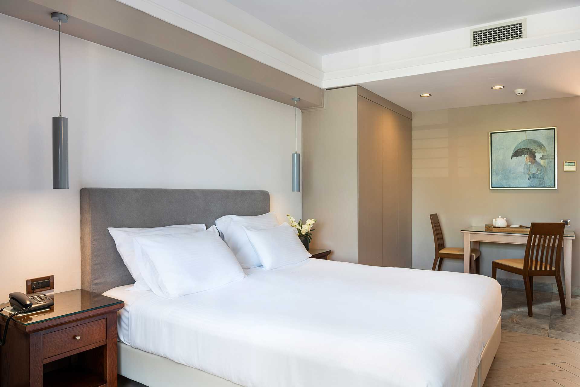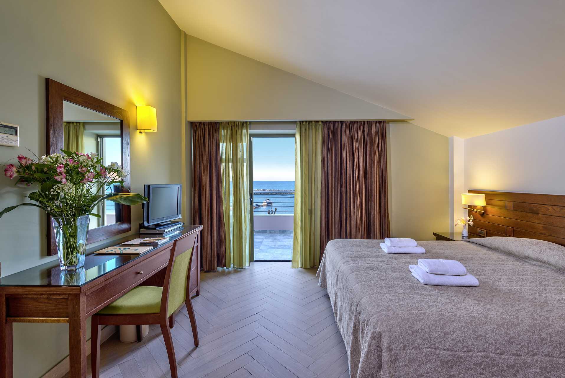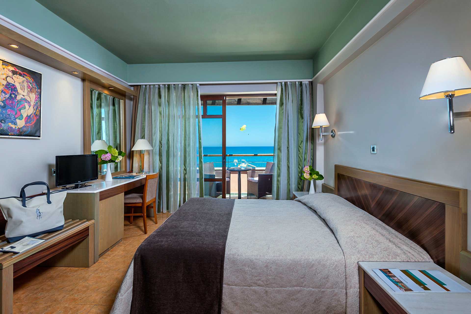 Kahden hengen huoneissa on parveke tai terassi, joista osasta on merinäköala tai rajoitettu merinäköala. Parivuode tai kaksi yhden hengen sänkyä. Lisävuodemahdollisuus kokoontaitettavasta vuoteesta. Maksuton wifi ja ilmastointi. Tallelokero lisämaksusta. Jääkaappi. Tv kansainvälisillä kanavilla. Kylpyamme tai suihku ja wc. Siivous 7 krt/viikko. Alle 2-vuotiaat lapset lasketaan lisävuoteella majoittuviksi henkilöiksi.