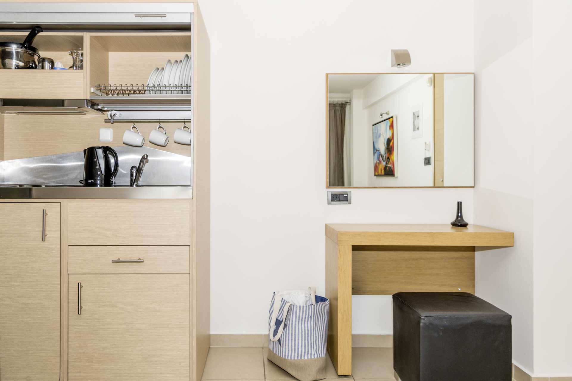 Yksiö, jossa on parveke tai maaterassi, joistakin on näköala uima-altaalle. Yhdistetty makuuhuone ja minikeittiö. Kaksi yhden hengen sänkyä. Lisävuodemahdollisuus vuodesohvasta. Minikeittiössä keittolevyt, jääkaappi, vedenkeitin ja yksinkertainen keittiövarustus. Maksuton wifi ja ilmastointi. Tallelokero lisämaksusta. Tv kansainvälisillä kanavilla. Hiustenkuivain. Suihku ja wc. Siivous 6 krt/viikko.
