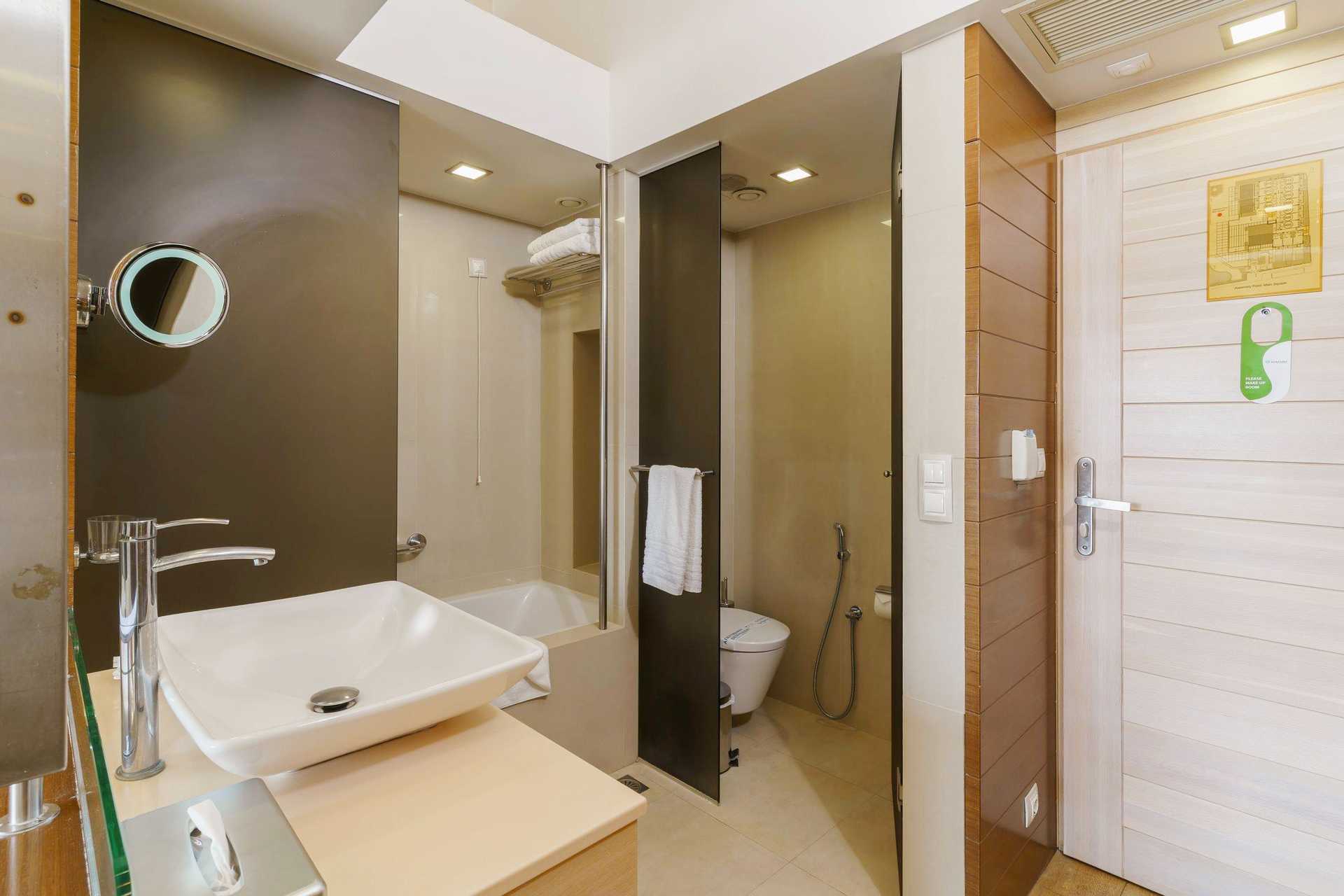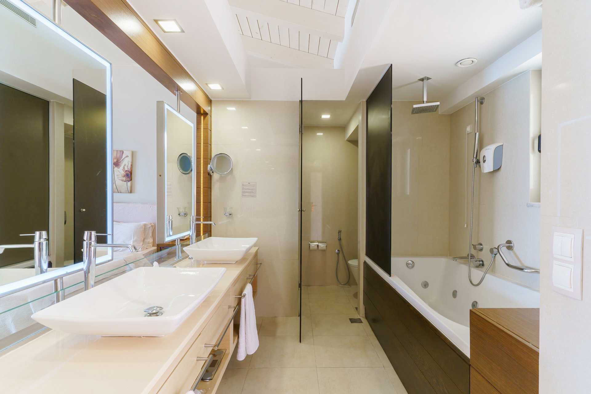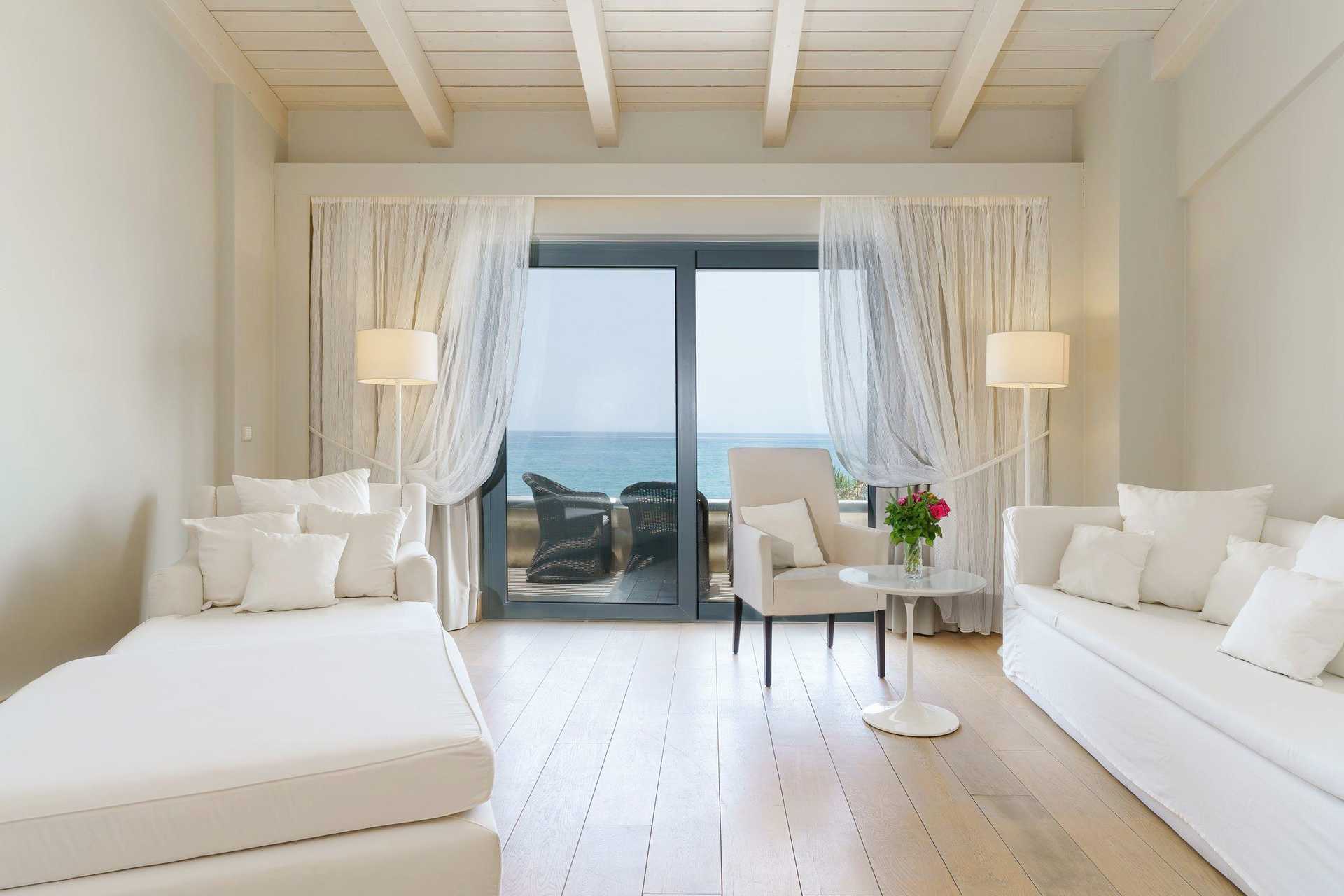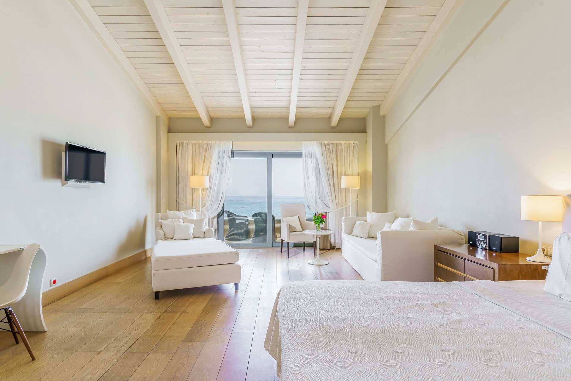 Sviitit parvekkeella ja merinäköalalla. Parivuode tai kaksi yhden hengen sänkyä. Lisävuodemahdollisuus vuodesohvasta. Maksuton wifi, ilmastointi ja tallelokero. Jääkaappi. Vedenkeitin, kahvia ja teetä. Tv kansainvälisillä kanavilla. Hyttysverkko. Kylpytakit ja tossut. Hiustenkuivain. Amme ja wc. Joissakin sviiteissä kylpyhuoneet ovat avoimia huoneeseen, suihkussa ja wc:ssä on ovet. Siivous 7 krt/viikko.