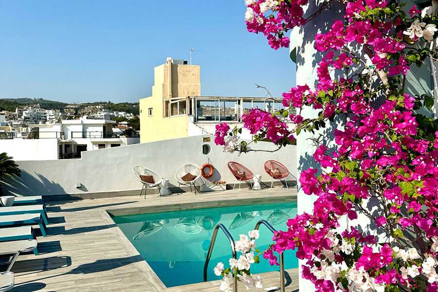 Kaksikerroksisia kolmioita, joissa on parveke merinäköalalla. Alakerrassa yhdistetty olohuone ja minikeittiö, jossa on jääkaappi, keittolevyt ja yksinkertainen keittiövarustus, ei paistinpannua. Kaksi makuuhuonetta yläkerrassa. Makuuhuoneissa joko parivuode tai kaksi erillistä vuodetta. Lisävuode vuodesohvasta (sijaitsee alakerrassa). Tv satelliittikanavilla. Maksuton wifi, tallelokero ja ilmastointi. Hiustenkuivain. Amme/suihku ja wc. Siivous 7 krt/viikko