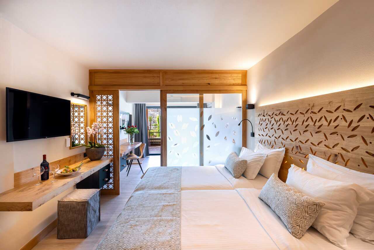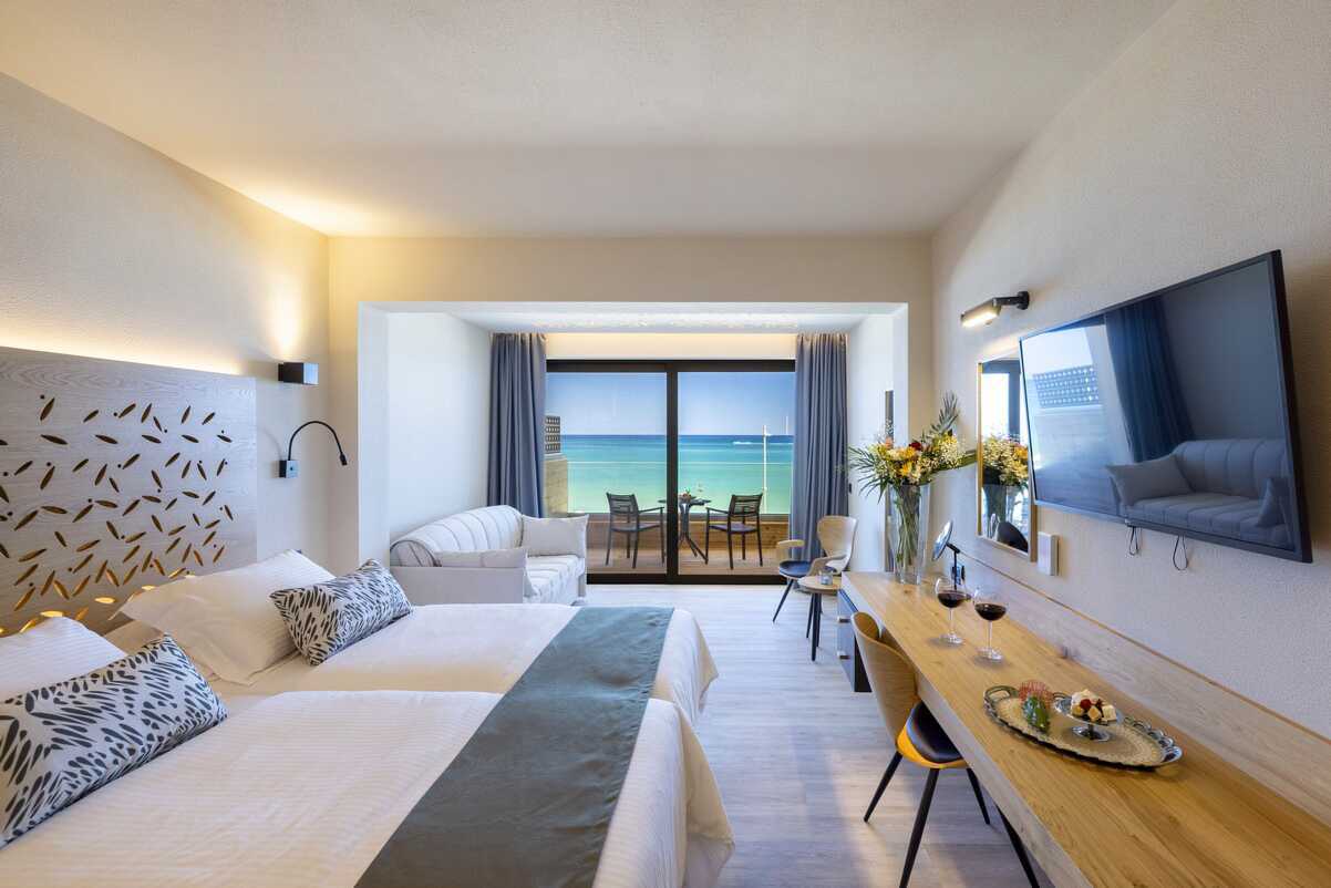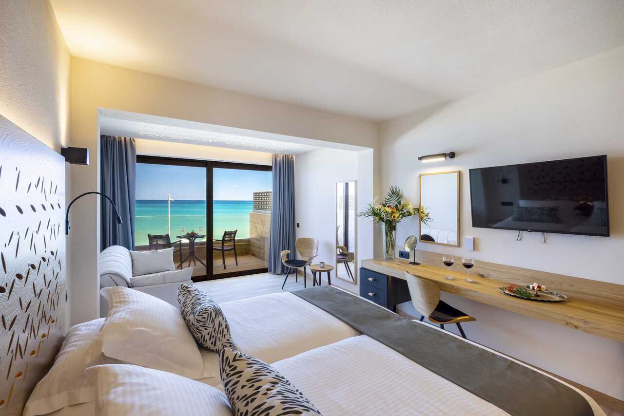 Superior-huone, parveke tai terassi, osassa näköala altaalle tai merelle. Parivuode tai kaksi erillistä vuodetta. Lisävuodemahdollisuus vuodesohvalla. Maksuton wifi, tallelokero ja ilmastointi. Jääkaappi. Kahvinkeitin. Vedenkeitin, kahvia ja teetä. Tv kansainvälisillä kanavilla. Kolminkertaiset ikkunat. Silitysrauta ja -lauta. Hiustenkuivain. Suihku ja wc. Siivous 7 krt/viikko.