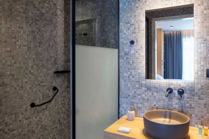 Yhden hengen huone parvekkeella tai terassilla. Maksuton wifi ja ilmastointi. Tallelokero lisämaksusta. Jääkaappi. Tv kansainvälisillä kanavilla. Kolminkertaiset ikkunat. Silitysrauta ja -lauta. Hiustenkuivain. Kylpyhuoneessa suihku ja wc. Siivous 7 krt/viikko.