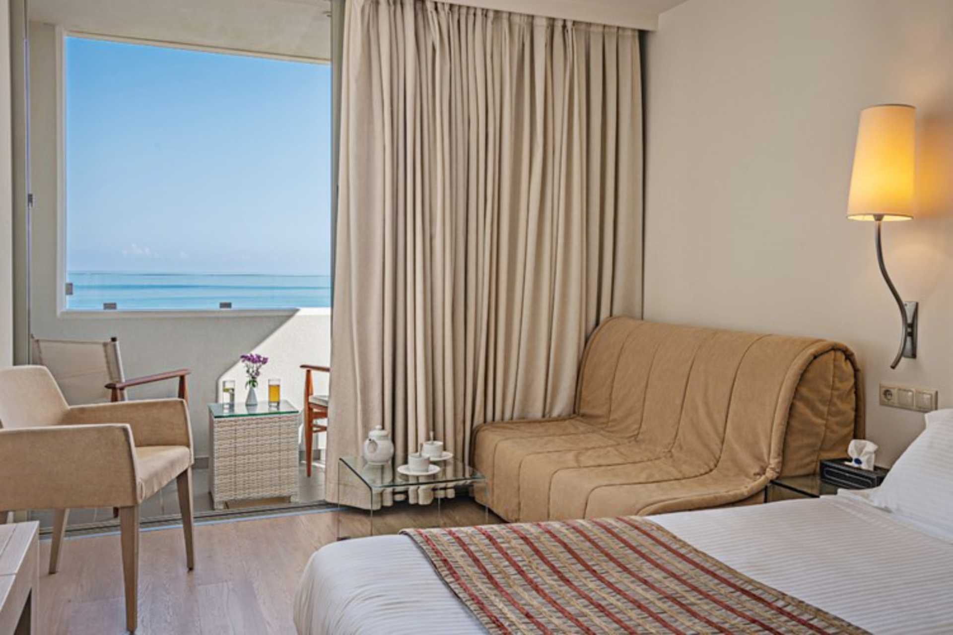 Superior-juniorsviitti, josta on parveke ja merinäköala. Parivuode tai kaksi yhden hengen sänkyä. Lisävuodemahdollisuudet yhden hengen sängyssä, kokoontaitettavassa sängyssä tai nojatuolissa. Saapuessasi huoneessa odottaa pullo viiniä, hedelmiä ja pullo vettä. Jääkaappi. Vedenkeitin, kahvia ja teetä. Maksuton wifi, ilmastointi ja tallelokero. Tv kansainvälisillä kanavilla. Kylpytakit ja tossut. Hiustenkuivain. Kylpyamme tai suihku ja wc. Siivous 7 krt/viikko. Liikenne saattaa häiritä joitakin huoneita.