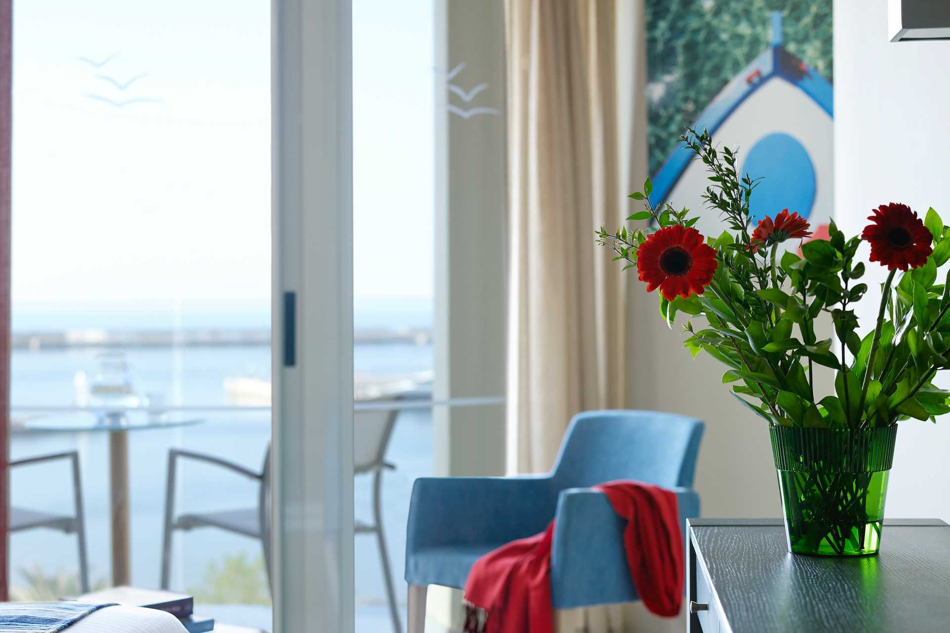 Juniorsviitti parvekkeella ja merinäköalalla. Kaksi yhden hengen sänkyä. Lisävuodemahdollisuus vuodesohvasta. Maksuton wifi, ilmastointi ja tallelokero. Minibaari. Vedenkeitin, kahvia ja teetä. Espressokone. Saapuessasi huoneessa odottaa viiniä, vettä ja hedelmiä. Tv kansainvälisillä kanavilla. Kylpytakit ja tossut. Hiustenkuivain. Suihku ja wc. Siivous 7 krt/viikko.