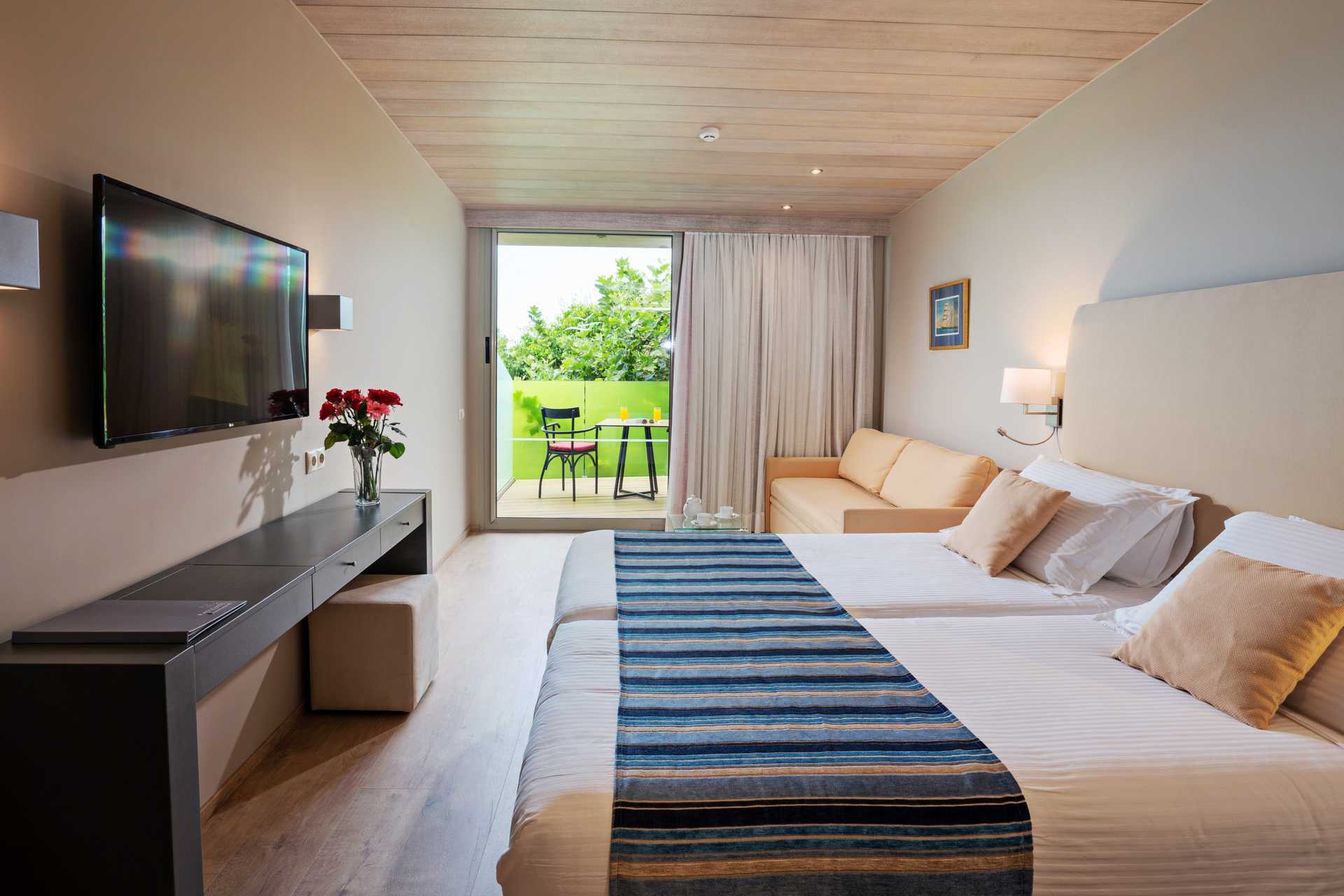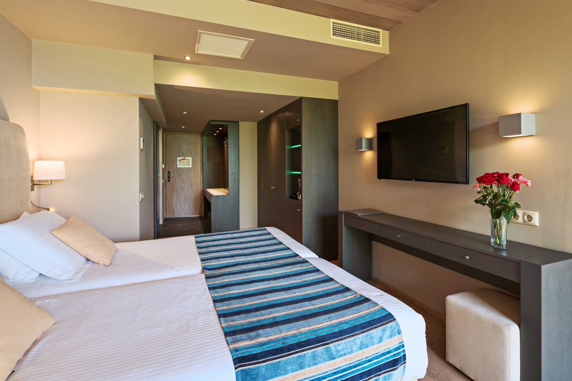 Kahden hengen huoneet parvekkeella, joistakin merinäköala. Kaksi yhden hengen sänkyä. Lisävuodemahdollisuus vuodesohvasta. Maksuton wifi, ilmastointi ja tallelokero. Minibaari. Vedenkeitin, kahvia ja teetä. Tv kansainvälisillä kanavilla. Kylpytakit ja tossut. Hiustenkuivain. Suihku ja wc. Siivous 7 krt/viikko.