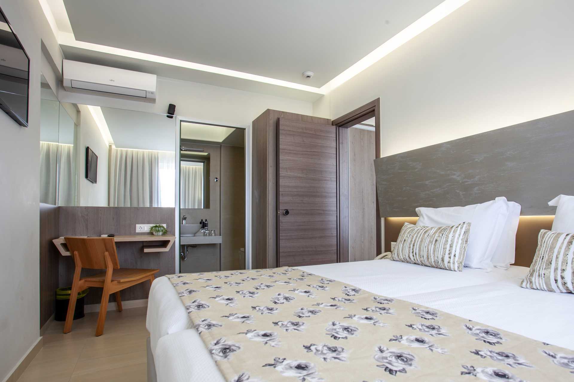 Perhehuoneita, joissa on parveke. Kaksi makuuhuonetta, toisessa parivuode tai kaksi yhden hengen vuodetta ja toisessa yhden hengen vuode ja vuodesohva. Maksuton wifi, ilmastoiti ja tallelokero. Jääkaappi. Vedenkeitin, kahvia ja teetä. Tv kansainvälisillä kanavilla joka huoneessa. Hiustenkuivain. Tossut. Kaksi kylpyhuonetta, joissa suihku ja wc. Siivous 7 krt/viikko. Alle 2-vuotiaat lapset katsotaan lisävuoteessa majoittuviksi henkilöiksi.