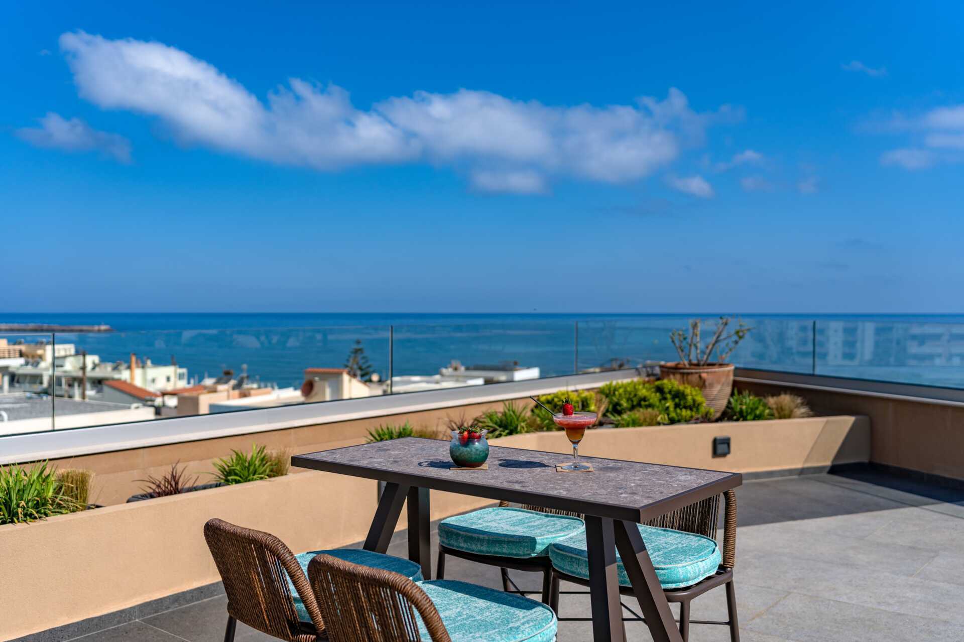 Minos Ambassador Suite & Spa on kuin pieni keidas keskellä Rethymnonia, jossa vietät rentouttavaa lomaa nauttien päivistä altaan reunalla hotellin katolla. Maksuttomat aurinkotuolit ja -varjot. Allaspyyhkeet. Allasbaari.