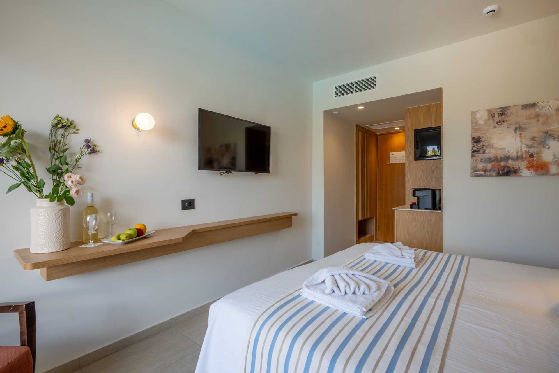 Superior-huoneita, joissa on parveke. Parivuode tai kaksi erillistä vuodetta. Mahdollisuus lisävuoteeseen vuodesohvasta tai yhden hengen vuoteesta. Wifi ja ilmastointi sisältyvät hintaan. Tallelokero lisämaksusta. Jääkaappi - minibaari lisämaksusta. Vedenkeitin, kahvia ja teetä. Saapuessa huoneessa odottaa vesipullo, viinipullo ja hedelmiä. TV kansainvälisillä kanavilla. Kylpytakit ja tossut, hiustenkuivaaja. Kylpyhuone, jossa on kylpyamme tai suihku ja wc. Siivous 7 krt/viikko. Alle 2 vuotiaat lapset katsotaan lisävuoteessa majoittuviksi henkilöiksi. Parvekkeella on hyttysverkot.