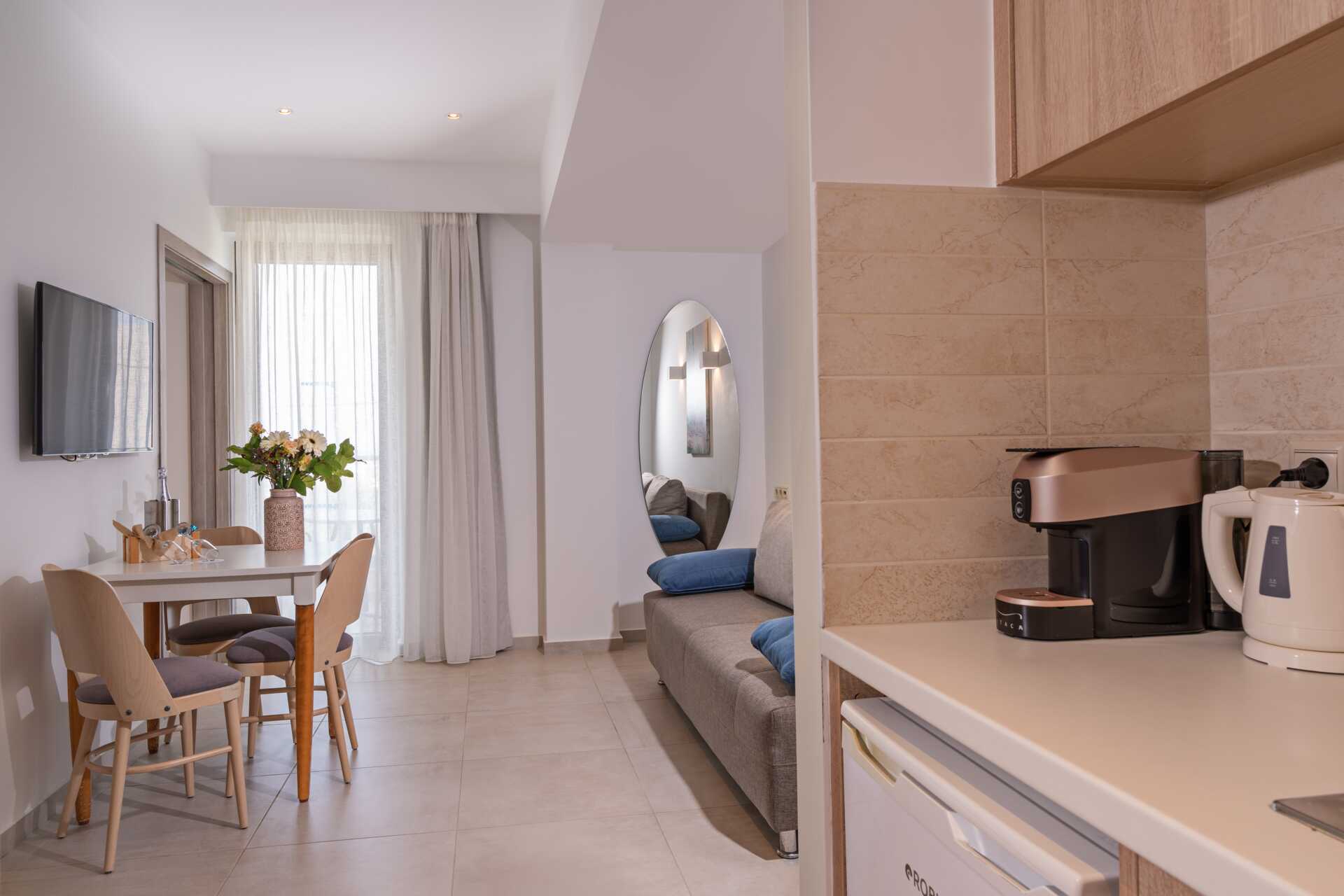 Kahden huoneen sviitti parvekkeella tai terassilla. Sviitissä on makuuhuone ja olohuone. Yksi parivuode tai kaksi erillistä vuodetta. Lisävuodemahdollisuus vuodesohvasta. Mukavuuksia, kuten peitot, tyynymenu ja hyttysverkot. Saapuessa huoneessa on kukkia, vesipullo, pullo kuohuviiniä ja hedelmiä. Maksuton wifi ja ilmastointi. Tallelokero lisämaksusta. Jääkaappi, minibaari lisämaksusta. Vedenkeitin, kahvia ja teetä. Espressokone. TV kansainvälisillä kanavilla. Allaspyyhkeet ovat huoneessa saavuttaessa. Kylpytakit ja tossut. Hiustenkuivain. Kylpyhuoneessa amme ja wc. Siivous 7 krt/viikko. Alle 2-vuotiaat lapset lasketaan lisävuoteella majoittuviksi henkilöiksi.