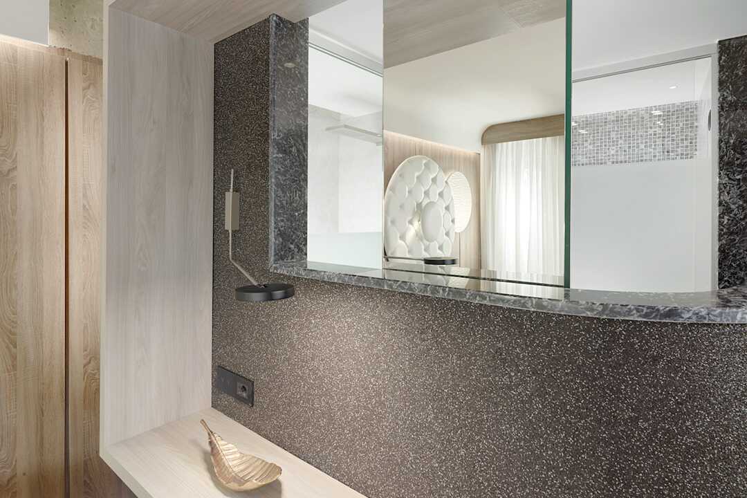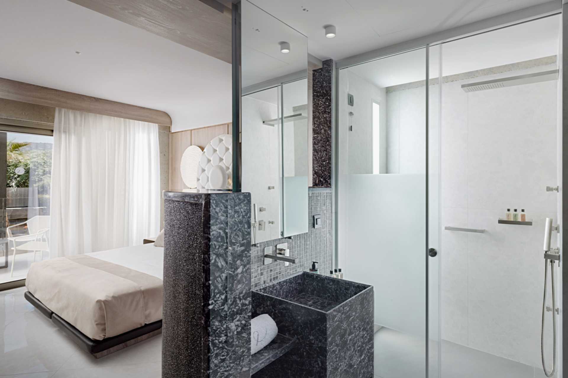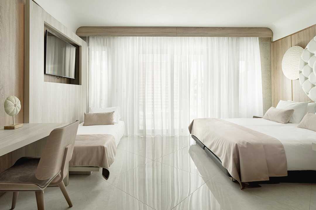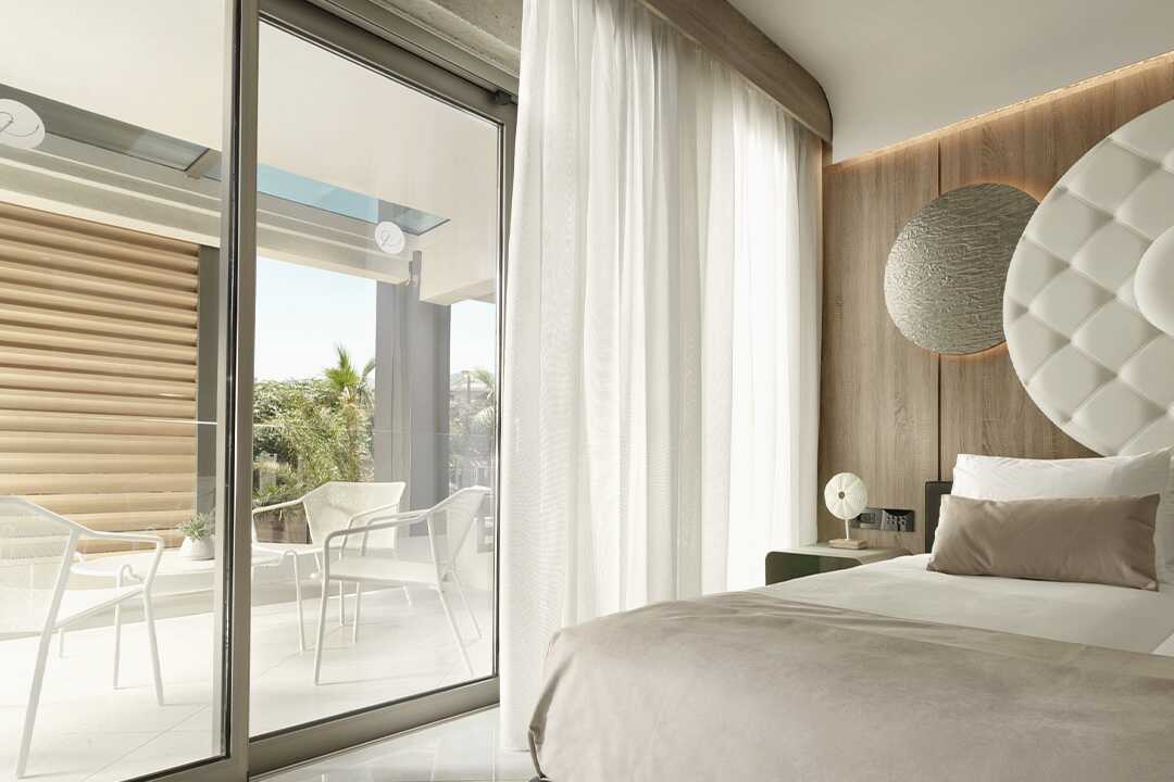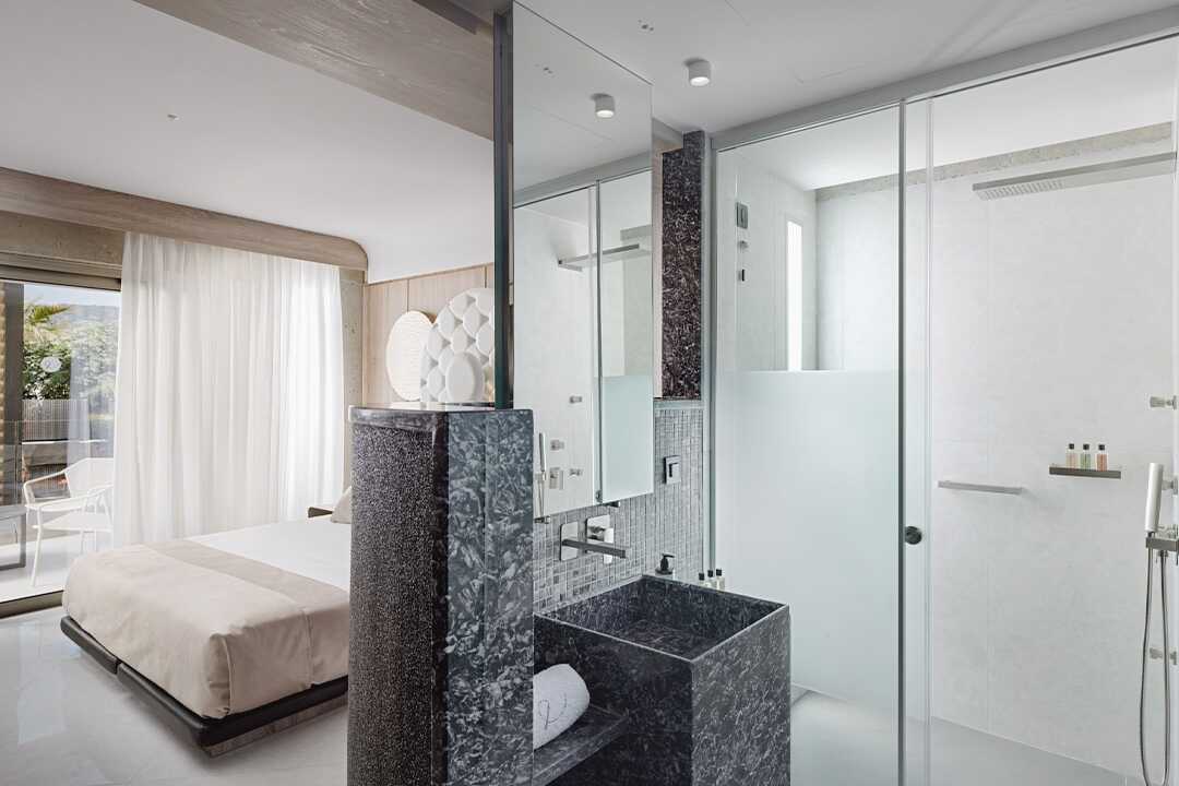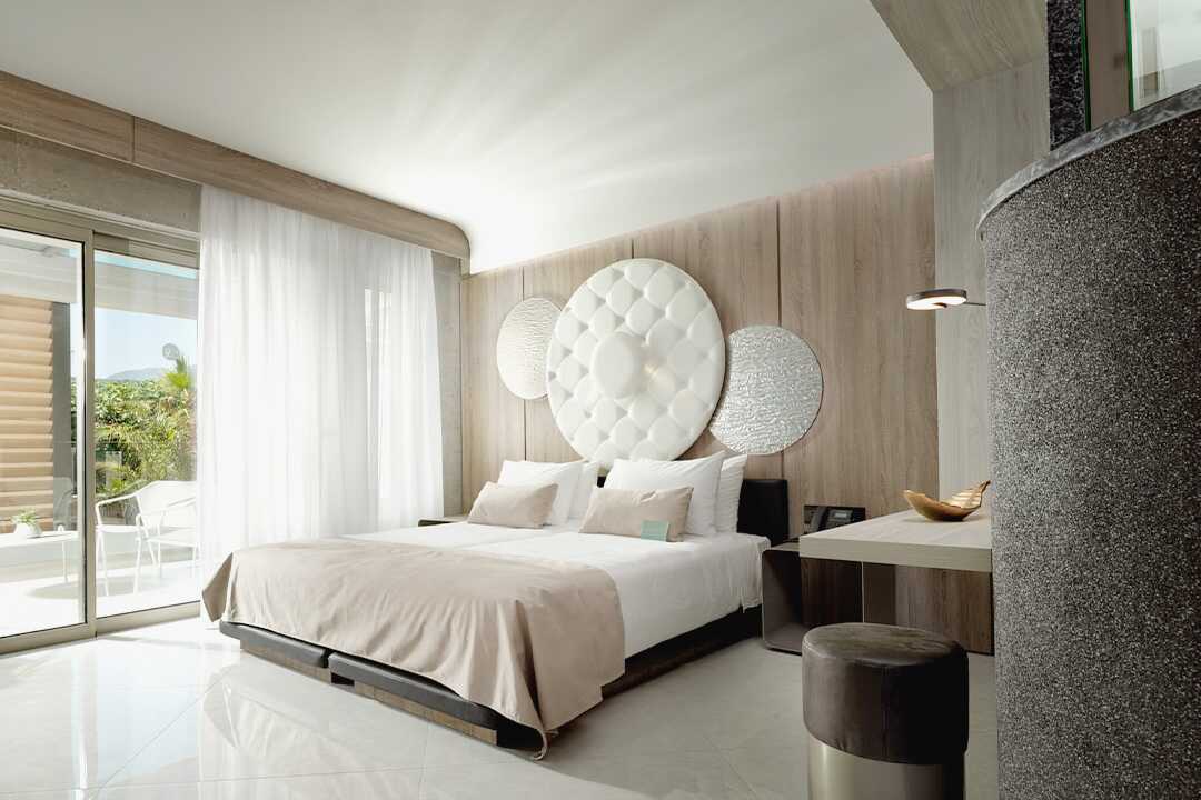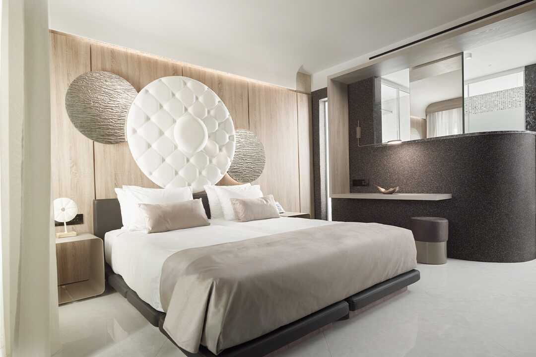 Kaksikerroksiset kahden huoneen sviitit, joissa on suuri parveke tai terassi porealtaalla ja merinäköalalla. Sisääntulokerroksessa on olohuone vuodesohvalla ja kylpyhuone ja yläkerrassa makuuhuone parivuoteella. Tyynymenu. Maksuton wifi, ilmastointi ja tallelokero. Minibaari. Vedenkeitin, kahvia ja teetä. Tv kansainvälisillä kanavilla. Hiustenkuivain. Kylpytakit ja tossut. Kylpyhuone, jossa kylpyamme erillisellä suihkulla tai suihkulla ja erillinen wc. Siivous 7 krt/viikko.