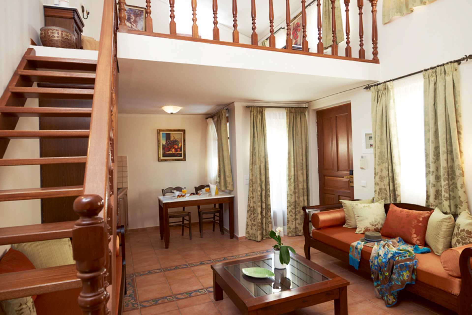 Kaksikerroksinen yksiö, jossa terassi tai parveke. Sisääntulokerroksessa on yhdistetty olohuone ja keittokomero, kolme vuodesohvaa ja kylpyhuone. Yläkerrassa on parivuode. Avoin pohjaratkaisu kerrosten välillä. Minikeittiössä on keittolevyt, jääkaappi ja yksinkertainen keittiövarustus. Maksuton wifi ja ilmastointi. Tallelokero lisämaksusta. Jokaisessa huoneessa on tv kansainvälisillä kanavilla. Hiustenkuivain. Kylpyhuoneessa kylpyamme ja wc. Siivous 6 krt/viikko. Alle 2-vuotiaat lapset lasketaan lisävuoteessa majoittuviksi henkilöiksi.