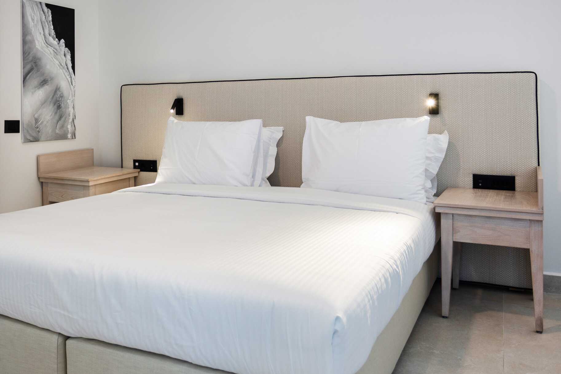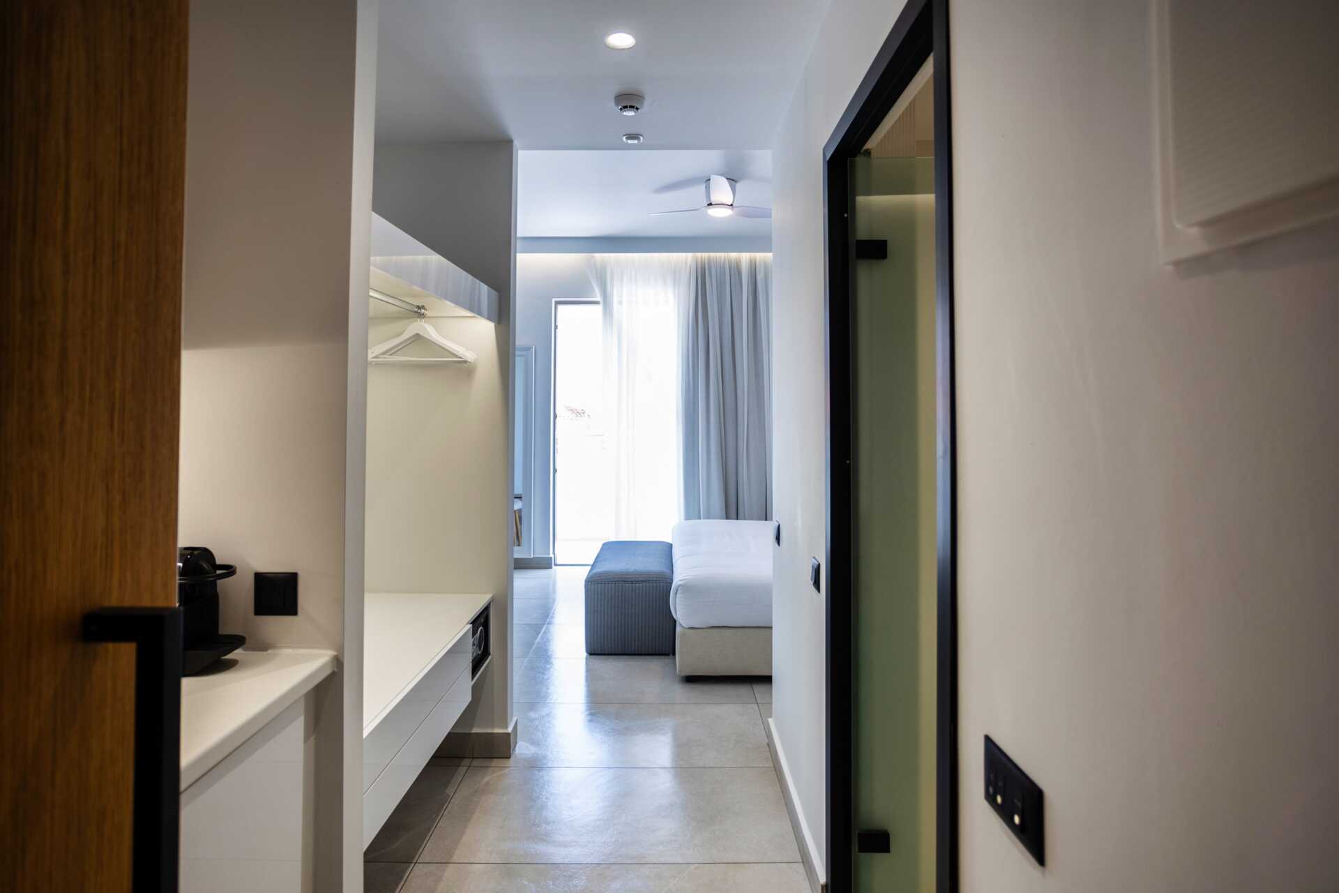 Kaksio parvekkeella, isolla parvekkeella rajoitetulla merinäköalalla tai ilman ulkotilaa. Makuuhuone sekä yhdistetty olohuone ja minikeittiö. Parivuode. Lisävuodemahdollisuus kahdelle vuodesohvasta. Minikeittiö, jossa on yksinkertaiset keittiövälineet, keittolevyt, jääkaappi, vedenkeitin sekä kahvin ja teen valmistusvälineet, espressokeitin (kapselit eivät sisälly hintaan). Maksuton wifi, ilmastointi ja tallelokero. Tv kansainvälisillä kanavilla. Hiustenkuivain. Kylpyhuoneessa suihku ja wc. Siivous 6 krt/viikko.