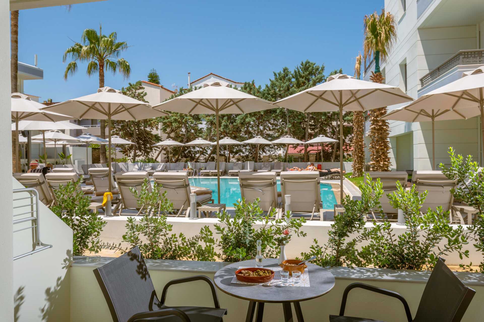 Superior-huoneita maaparvekkeella tai allasnäkymällä. Parivuode. Maksuton wifi, ilmastointi ja tallelokero. Jääkaappi. Veden ja kahvin keittomahdollisuus. Silitystarvikkeet. Tv satelliittikanavilla. Hiustenkuivain. Amme/suihku ja wc. Hiustenkuivain. Siivous 6 krt/viikko.
