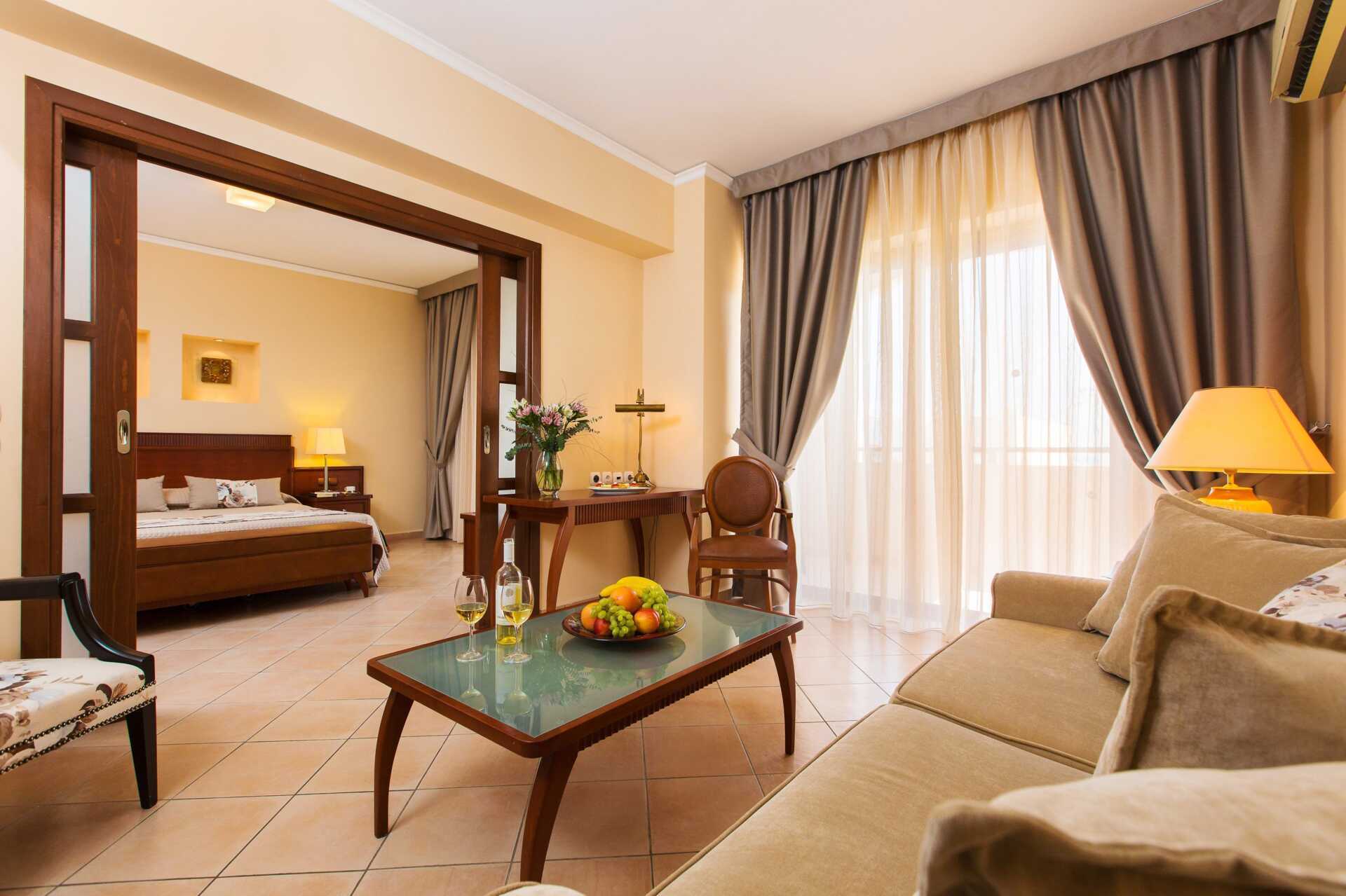 Perhehuone parvekkeella ja näköalalla uima-altaalle. Huoneet sijaitsevat sivurakennuksessa, ja ne koostuvat makuuhuoneesta ja olohuoneesta. Huoneiden välillä avoin pohjaratkaisu. Parivuode ja yhden hengen vuode. Lisävuodemahdollisuus kahteen vuodesohvaan. Maksuton wifi ja ilmastointi. Tallelokero lisämaksusta. Jääkaappi. Vedenkeitin, kahvia ja teetä. Tv kansainvälisillä kanavilla. Kylpytakit ja tossut. Hiustenkuivain. Kylpyamme tai suihku ja wc. Siivous 7 krt/viikko.