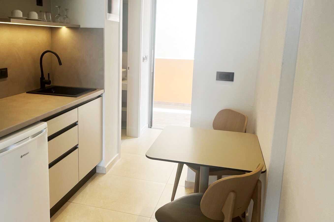 Yksiö parvekkeella tai maaparvekkeella, joistakin parvekkeellisista huoneistoista on merinäköala. Yhdistetty makuuhuone ja minikeittiö. Kaksi yhden hengen sänkyä. Lisävuodemahdollisuus vuodesohvasta. Minikeittiössä keittolevyt, jääkaappi, vedenkeitin ja yksinkertainen keittiövarustus. Maksuton wifi ja ilmastointi. Tallelokero lisämaksusta. Tv kansainvälisillä kanavilla. Hiustenkuivain. Kylpyamme tai suihku ja wc. Siivous 6 krt/viikko. Alle 2-vuotiaat lapset lasketaan lisävuoteella majoittuviksi henkilöiksi.
