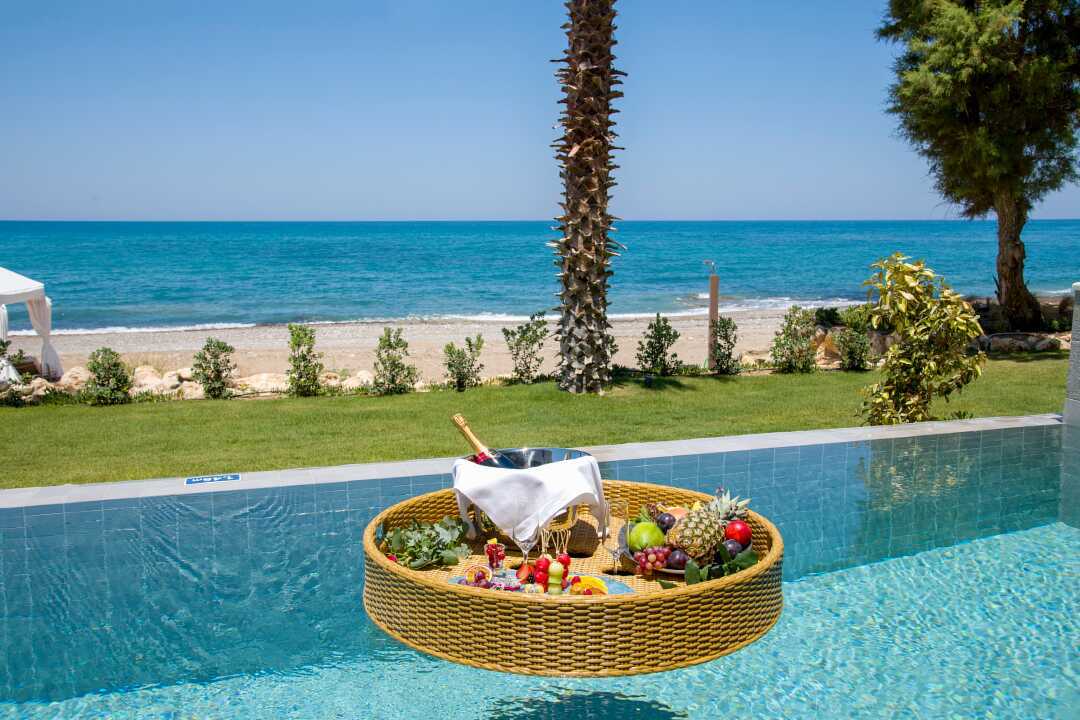 Palmujen reunustama allasalue on hotellin sydän, hiljainen ja kutsuva alue mukavine aurinkotuoleineen, -varjoineen ja merinäköaloineen. Täältä pääset hotellin omalle hiekkarannan osalle, jossa on myös aurinkotuoleja ja -varjoja hotellin vieraille. Maksuttomat allaspyyhkeet.