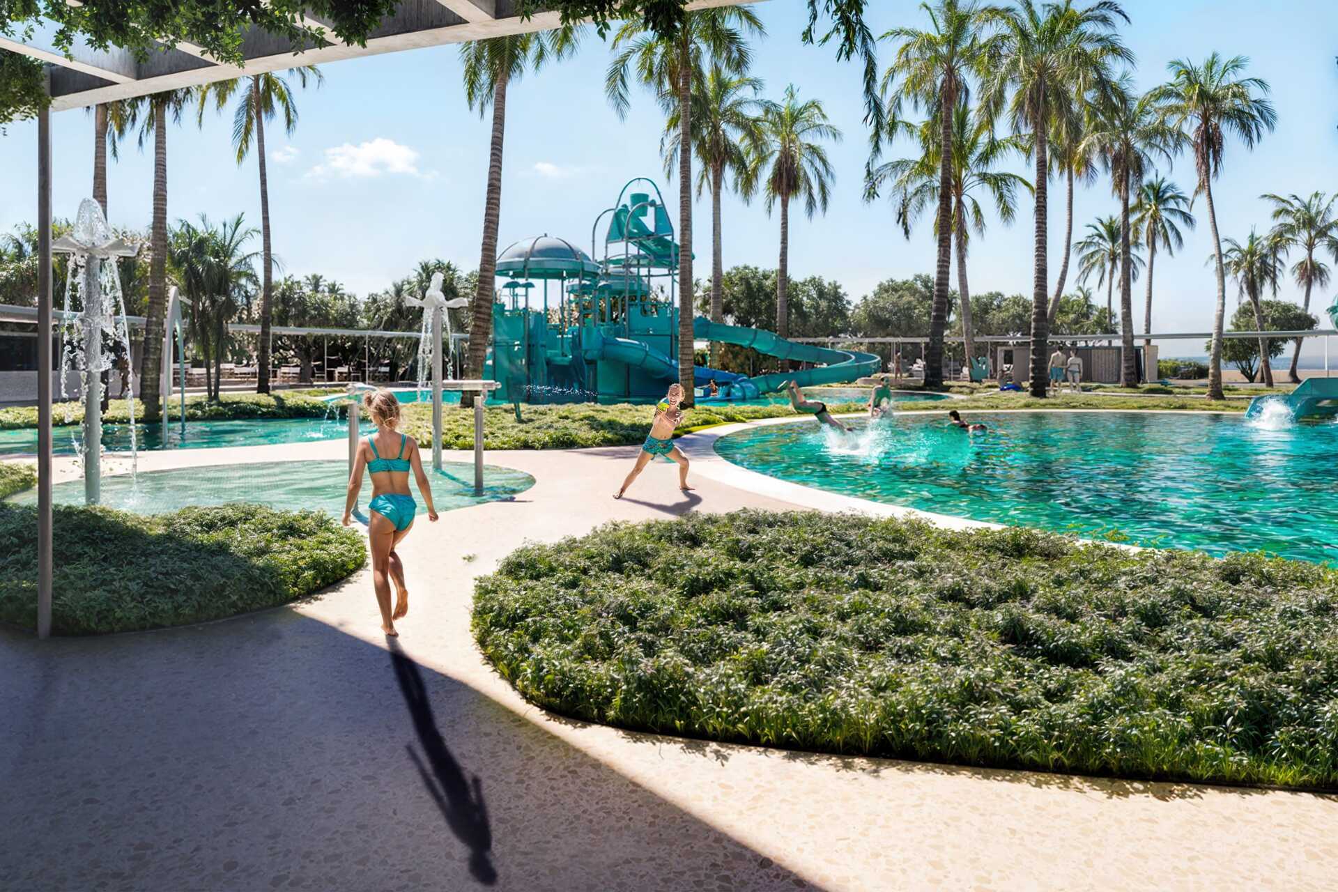 Vesipuisto, jossa on neljä erilaista allasta eri ikäisille ja aktiviteeteille. Suurempi uima-allas viidellä vesiliukumäellä, ikärajallinen rentoutumisallas ja suihkulähteillä varustettu Spray Action -uima-allas. Pienempien vesiliukumäkien ikäraja on 4–10 vuotta. Isompien vesiliukumäkien ikäraja on yli 10 vuotta. Vesipuistossa on myös suihkuja, hengenpelastajia, vaatekaappeja, allastopyyhkeet, aurinkotuolit ja aurinkovarjot sekä hiljaisempi alue ikärajalla ja Bali-vuoteilla - lisämaksusta. Vesipuisto on hotellin vieraille maksuton, mutta se on avoinna myös niille, jotka eivät yöpy hotellissa, jolloin siitä veloitetaan lisämaksu. Vesipuisto on avoinna klo klo 10.30–18.30, kun sää sallii.