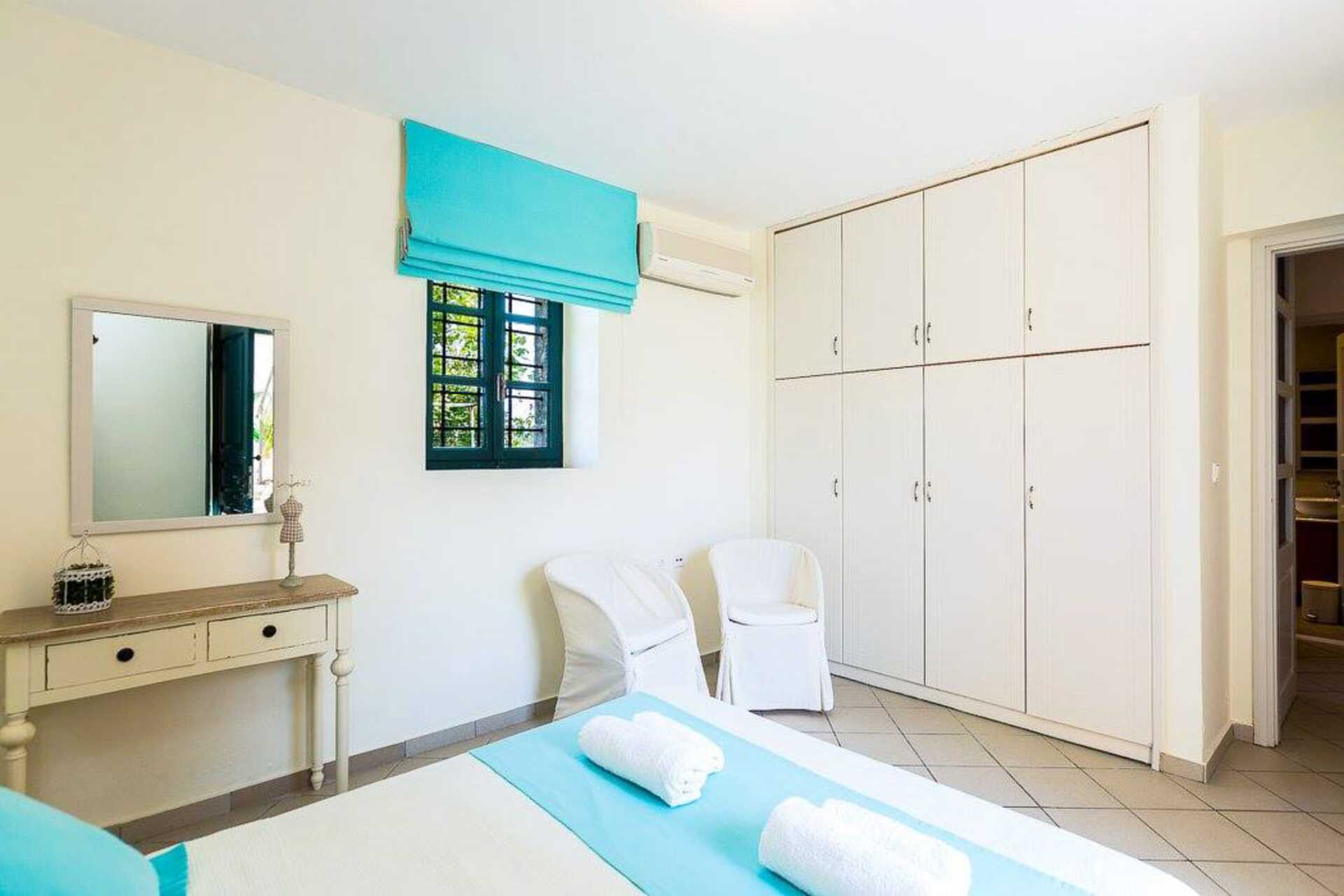Sisäänkäynti huvilaan on toisessa kerroksessa, jossa on myös olohuone ja keittiö. Keittiössä on liesi ja uuni, jääkaappi ja pakastin, mikro, kahvinkeitin, leivänpaahdin ja yksinkertainen keittiövarustus. Olohuoneessa on ruokailutila, sohva ja nojatuolit, takka ja tv kansainvälisillä kanavilla. Alakerrassa on kaksi makuuhuonetta, joista toisessa parivuode ja toisessa kaksi erillistä sänkyä sekä kylpyhuone, jossa on hiustenkuivain, suihku ja wc sekä pesukone. Uloskäynti puutarhaan, jossa on ruokailutila ja grilli. Maksuton wifi, tallelokero ja ilmastointin, saatavilla kaikissa huoneissa. Bluetooth-kaiutin. Siivous 1 krt/viikko. Liinavaatteet ja pyyhkeet sisältyvät hintaan.