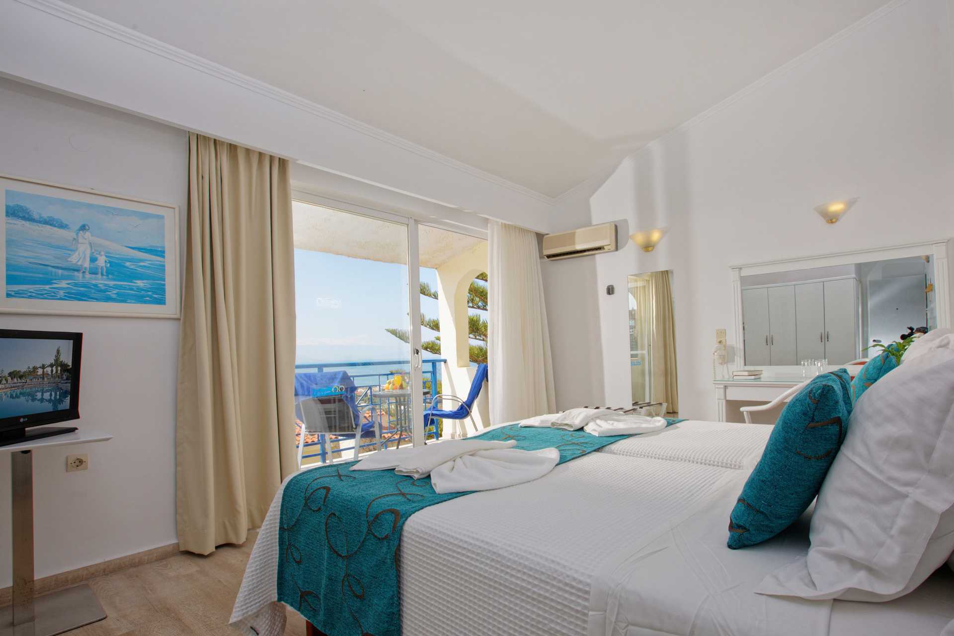 Deluxe-huoneita parvekkeella ja rajoitetulla merinäköalalla. Poreamme kylpyhuoneessa. Parisänky tai kaksi yhden hengen sänkyä. Lisävuodemahdollisuus vuodesohvasta. Maksuton wifi ja ilmastointi. Tallelokero lisämaksusta. Jääkaappi. Vedenkeitin, kahvia ja teetä. Tv kansainvälisillä kanavilla. Hiustenkuivain. Kylpyamme tai suihku ja wc. Siivous 7 krt/viikko.