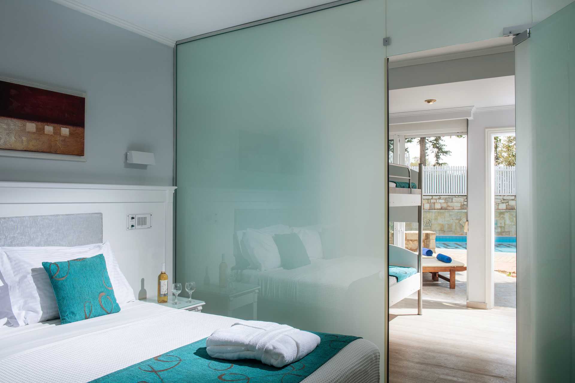 Perhehuoneita jaetulla altaalla. Sisäänkäynti huoneisiin ulkotilan kautta. Huoneistossa on kaksi huonetta; erillinen makuuhuone parivuoteella sekä toinen huone, jossa kaksi erillistä vuodetta tai kerrossänky. Maksuton wifi ja ilmastointi. Tallelokero lisämaksusta. Jääkaappi. Vedenkeitin, kahvia ja teetä. Tv kansainvälisillä kanavilla. Hiustenkuivain. Kylpyamme tai suihku ja wc. Siivous 7 krt/viikko.
