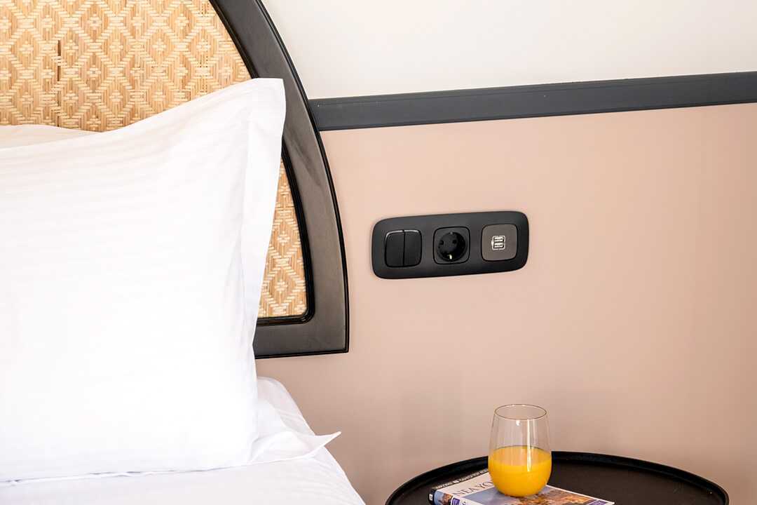 Kahden hengen huone parvekkeella. Parivuode tai kaksi yhden hengen sänkyä. Maksuton wifi ja ilmastointi. Minibaari. Vedenkeitin, kahvia ja teetä tai kahvinkeitin. Tv kansainvälisillä kanavilla. Kylpyhuoneessa suihku ja wc. Siivous 7 krt/viikko.