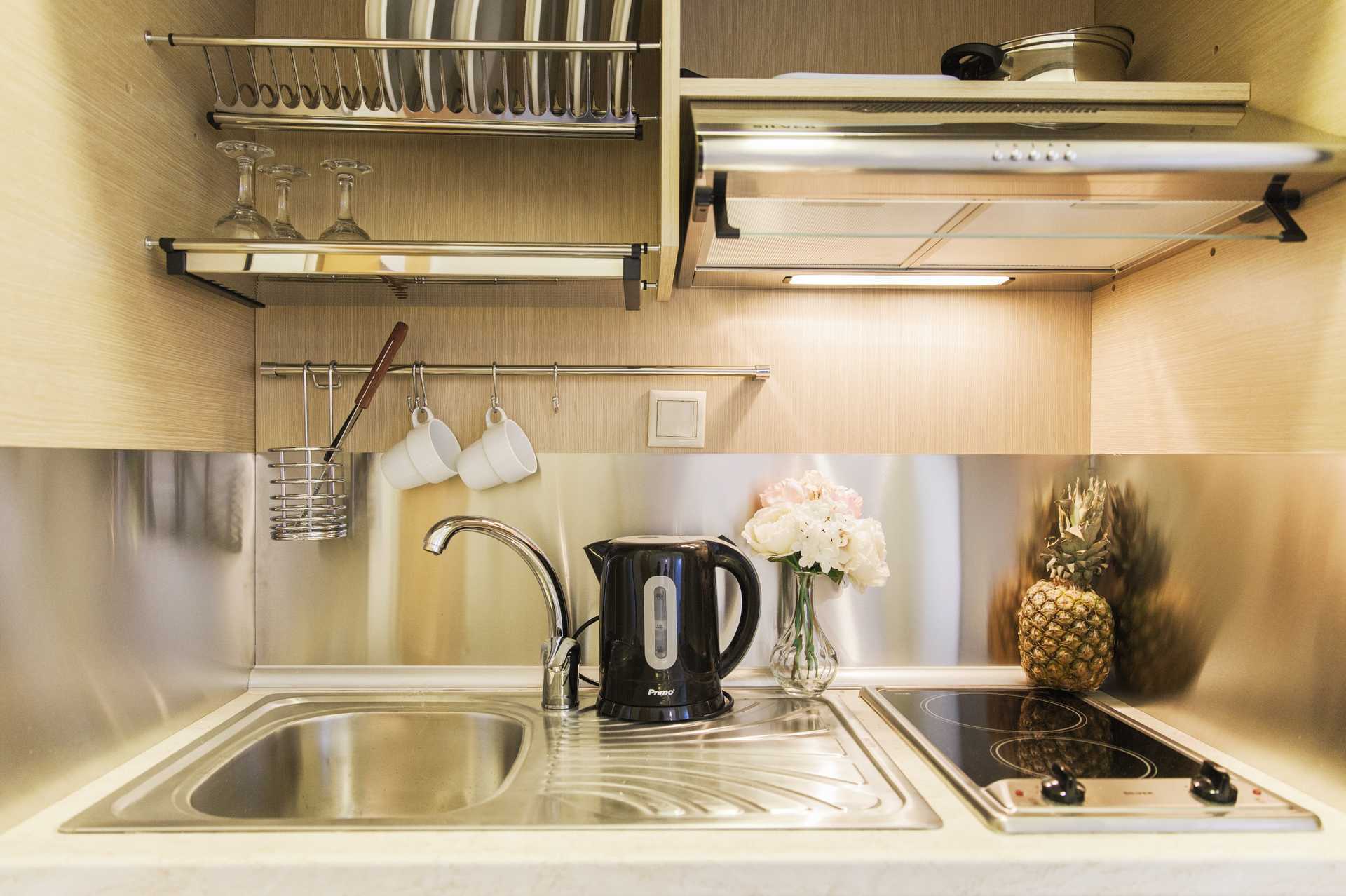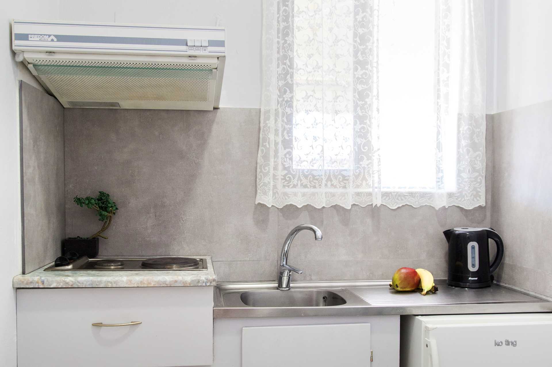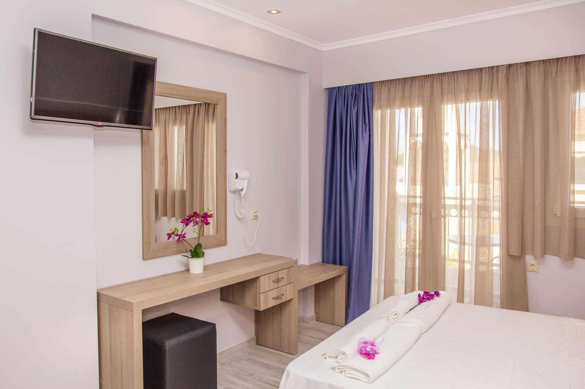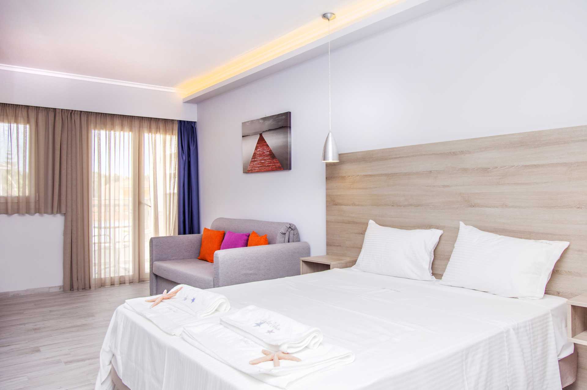 Yksiö parvekkeella. Yhdistetty makuuhuone ja minikeittiö. Parivuode tai kaksi yhden hengen sänkyä. Lisävuodemahdollisuus vuodesohvasta. Neljän henkilön majoittuessa samassa huoneessa voidaan huone kokea ahtaaksi. Minikeittiössä keittolevyt, jääkaappi, vedenkeitin ja yksinkertainen keittiövarustus. Maksuton wifi. Ilmastointi ja tallelokero lisämaksusta. Tv kansainvälisillä kanavilla. Hiustenkuivain. Suihku ja wc. Siivous 6 krt/viikko.