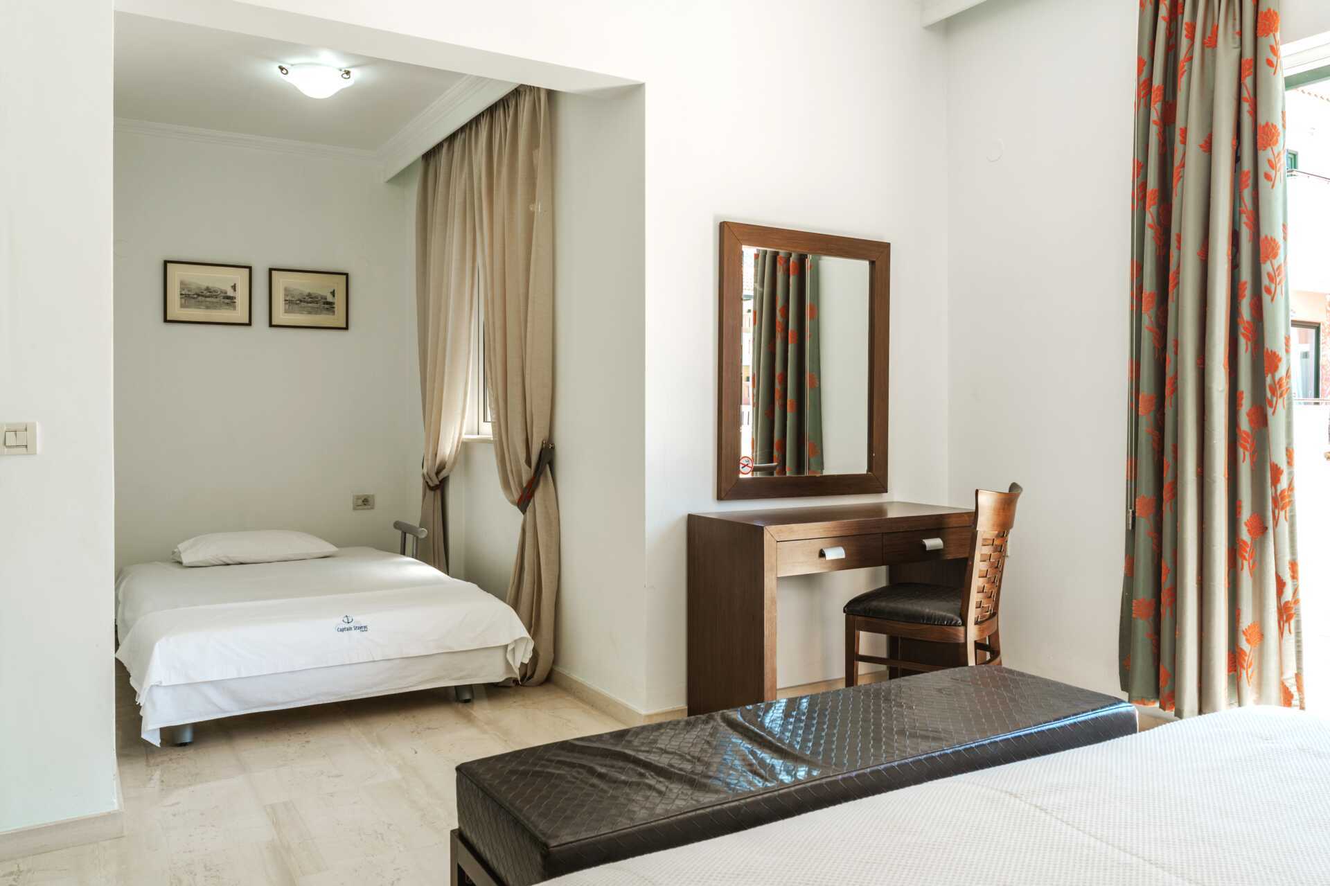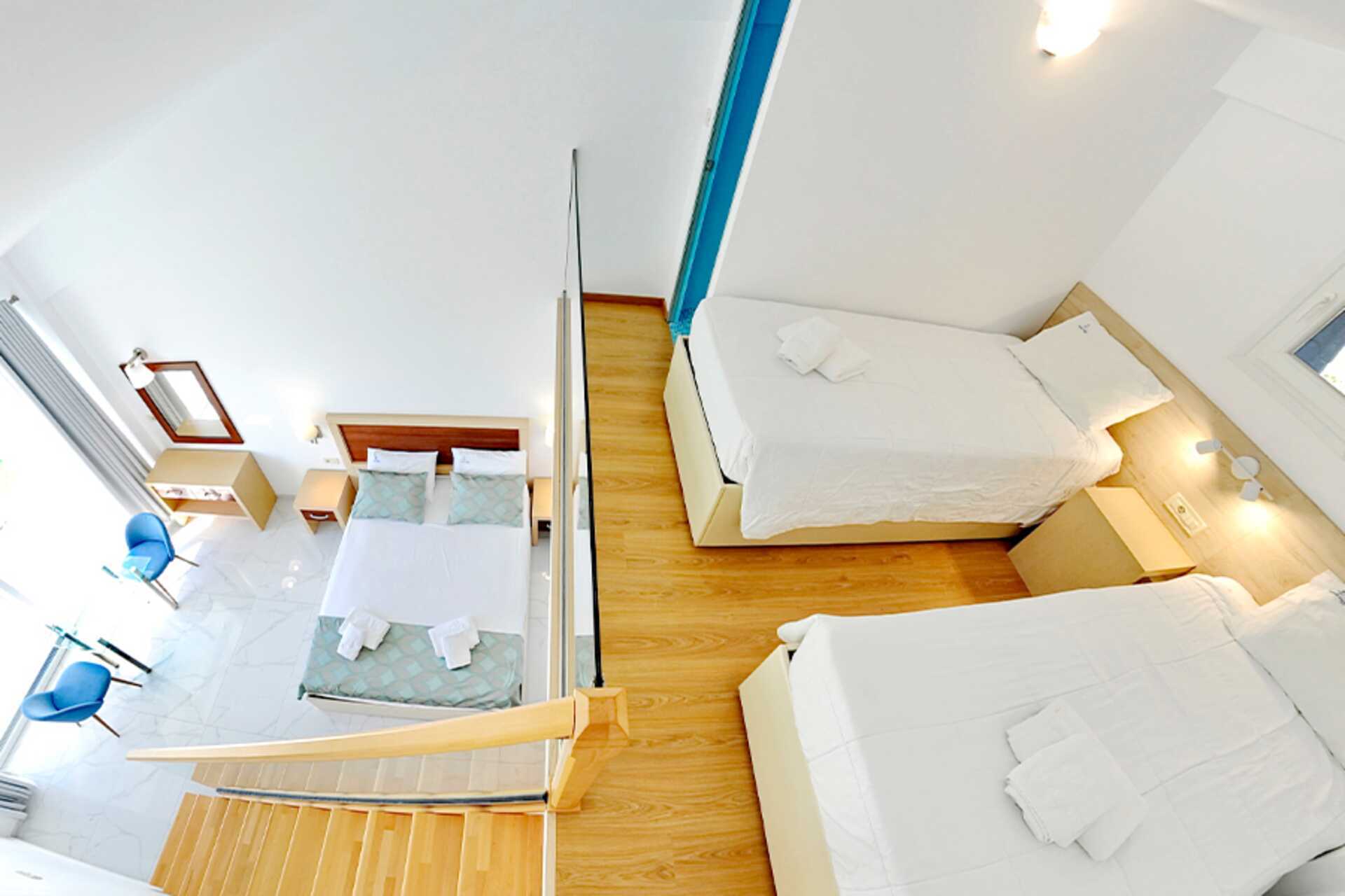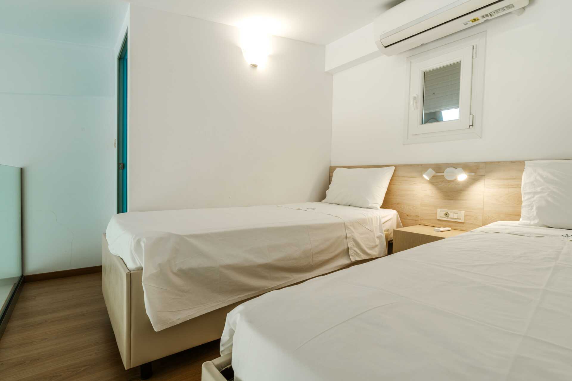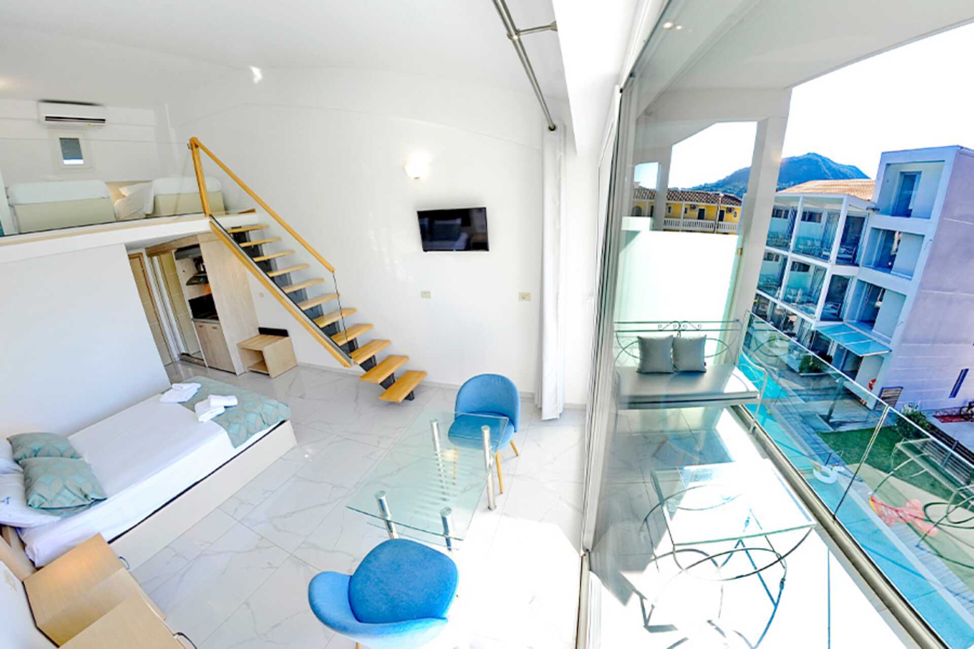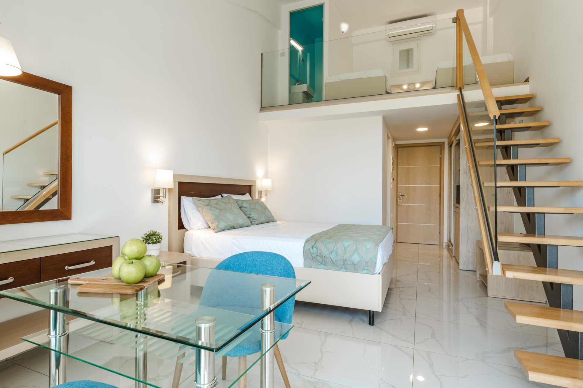 2-kerroksinen kaksio parvekkeella ja allasnäkymällä. Huoneisto sijaitsee hotellin uudessa osassa. Sisäänkäyntikerroksessa on parivuode, minikeittiö ja erillinen wc. Yläkerrassa on parvi, jossa on kaksi erillistä vuodetta ja kylpyhuone. Minikeittiössä keittolevyt, jääkaappi, vedenkeitin ja yksinkertainen keittiövarustus. Maksuton wifi, ilmastointi ja tallelokero. Tv paikallisilla kanavilla. Suihku ja wc. Siivous 6 krt/viikko.