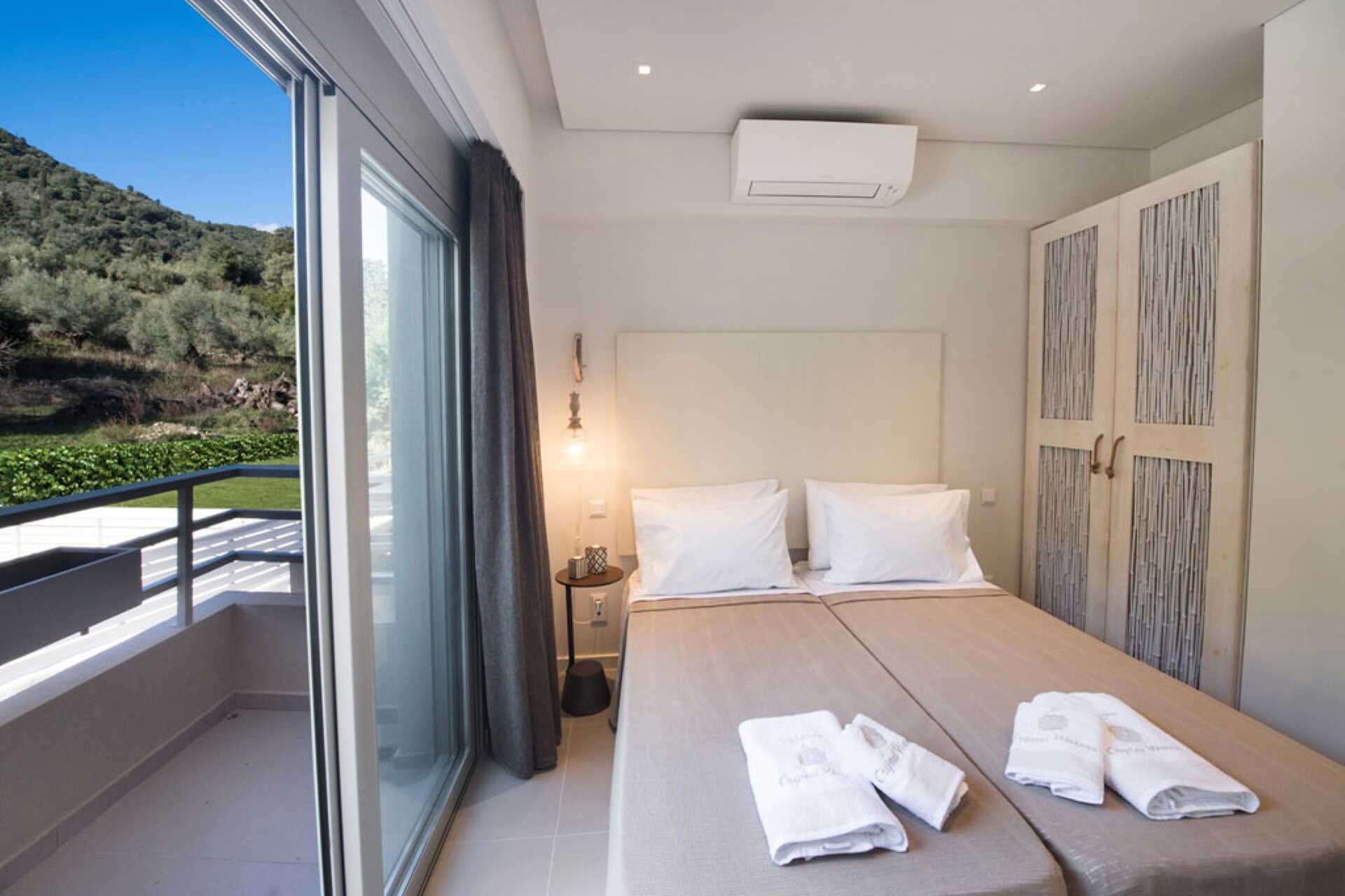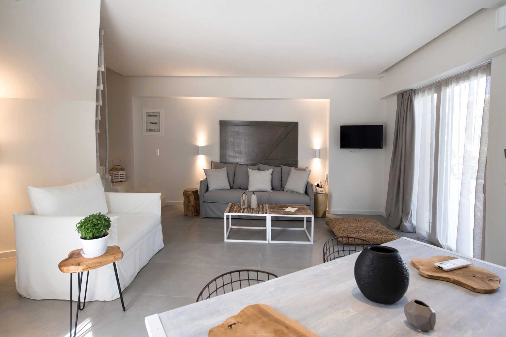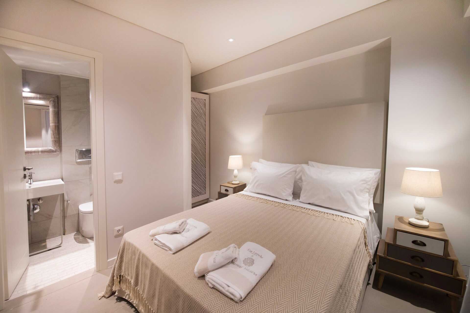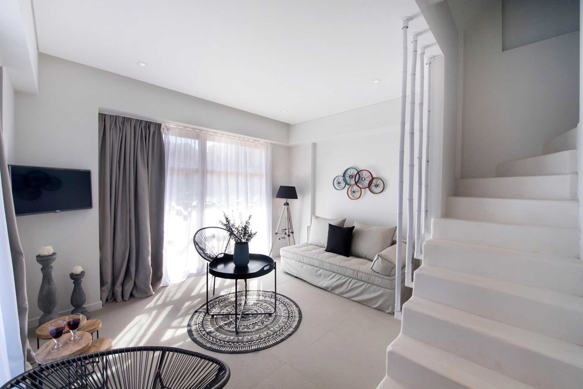 Kahden huoneen sviitti maaterassilla. Sisääntulokerroksessa on olohuone ruokailutilalla - osa baaritiskillä, yksi tai kaksi vuodesohvaa, wc ja ulkotila. Yläkerrassa on kaksi makuuhuonetta, joista toisessa on parveke. Toisessa makuuhuoneessa parivuode ja toisessa makuuhuoneessa kaksi erillistä vuodetta sekä kylpyhuone suihkulla ja wc:llä. Maksuton wifi, ilmastointi ja tallelokero. Minibaari. Vedenkeitin, kahvia ja teetä. Tv kansainvälisillä kanavilla. Hiustenkuivain. Siivous 7 krt/viikko.