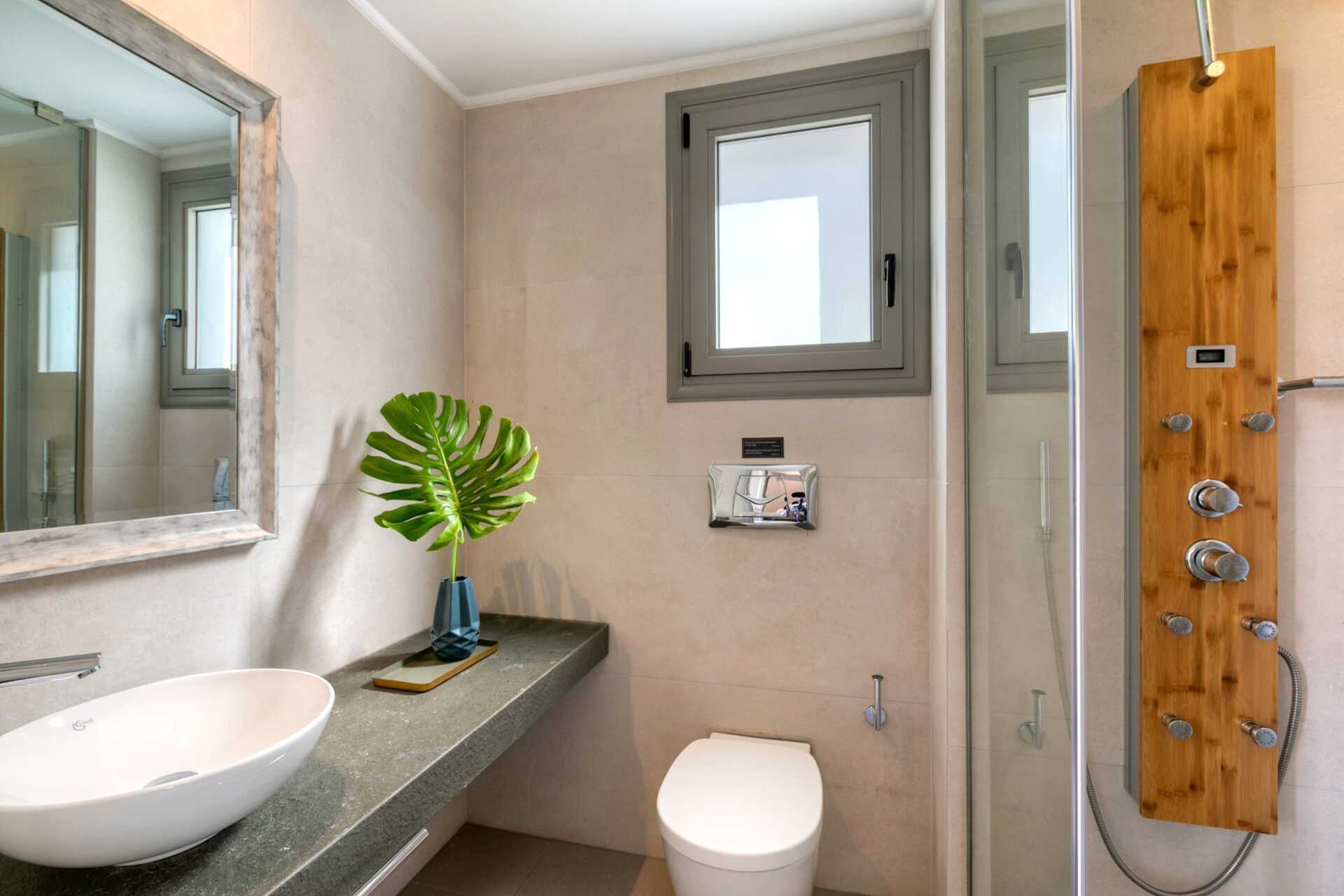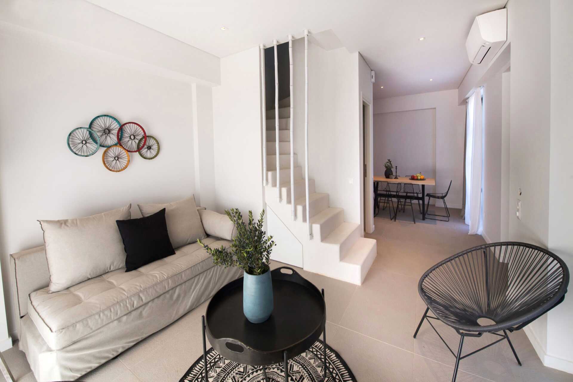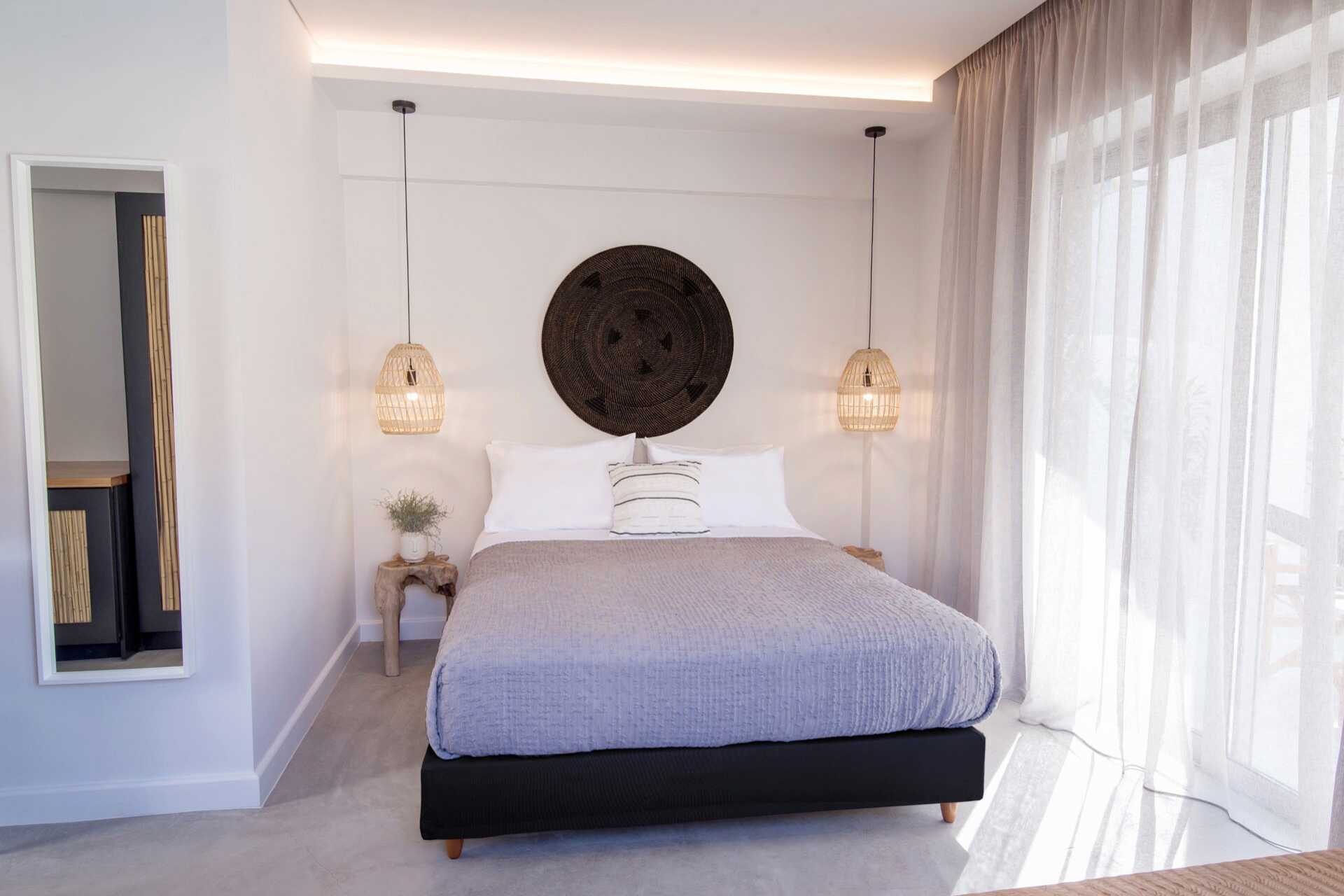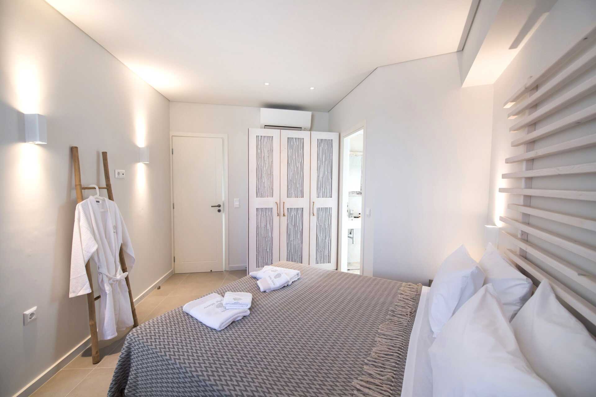 Kahden huoneen sviitti maaterassilla. Sisääntulokerroksessa on olohuone ruokailutilalla - osa baaritiskillä, yksi tai kaksi vuodesohvaa, wc ja ulkotila. Yläkerrassa on kaksi makuuhuonetta, joista toisessa on parveke. Toisessa makuuhuoneessa parivuode ja toisessa makuuhuoneessa kaksi erillistä vuodetta sekä kylpyhuone suihkulla ja wc:llä. Maksuton wifi, ilmastointi ja tallelokero. Minibaari. Vedenkeitin, kahvia ja teetä. Tv kansainvälisillä kanavilla. Hiustenkuivain. Siivous 7 krt/viikko.