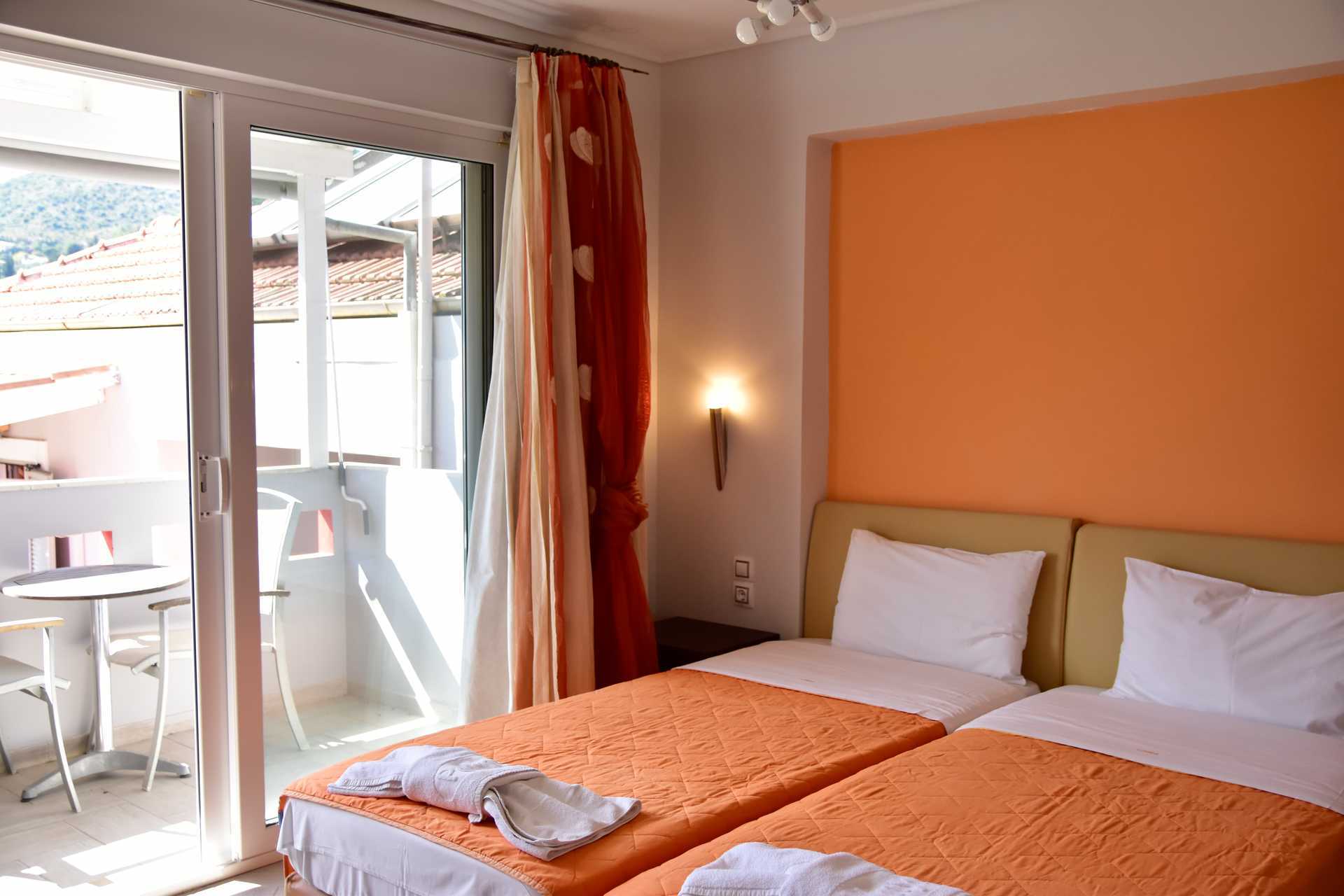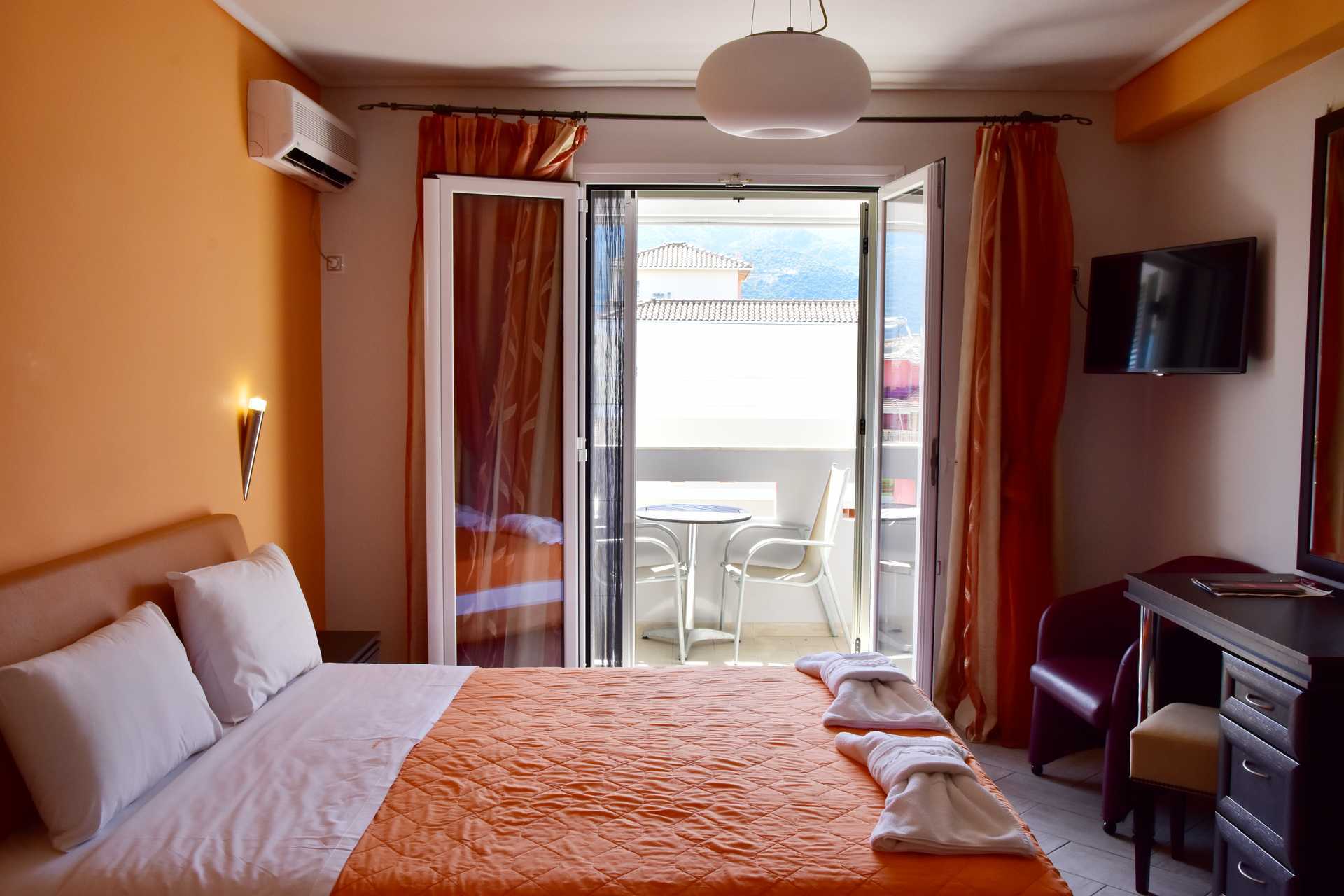 Kahden hengen huone parvekkeella. Parivuode tai kaksi yhden hengen sänkyä. Maksuton wifi. Ilmastointi ja tallelokero lisämaksusta. Jääkaappi. Tv paikallisilla kanavilla. Suihku ja wc. Siivous 6 krt/viikko.