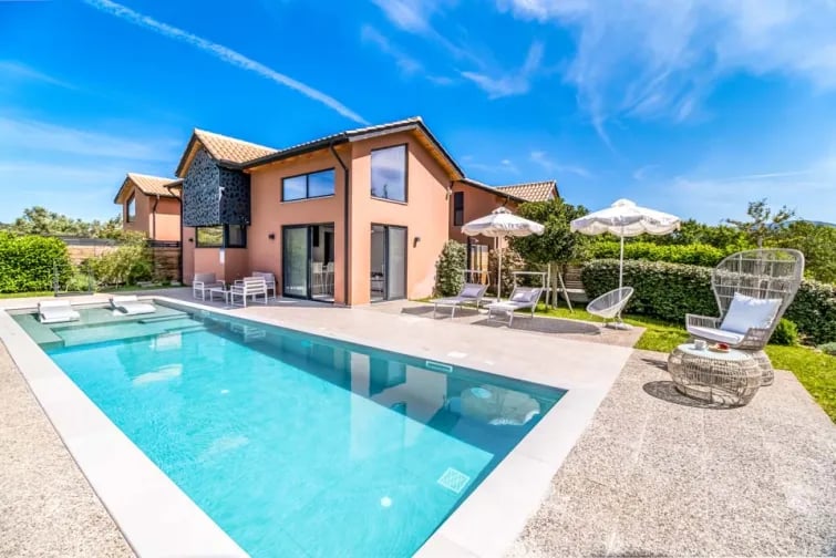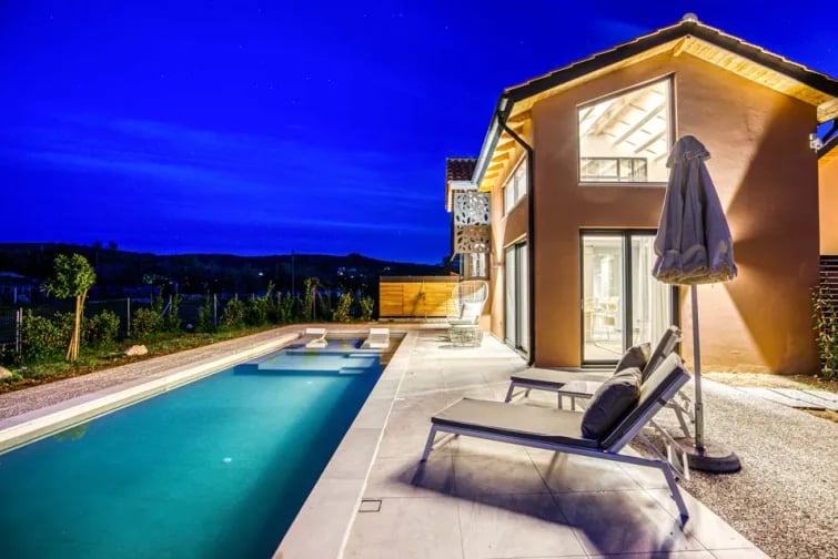 Kauniin ulkoalueen vastustamattomin puoli on epäilemättä oma uima-allas – taivaansininen keidas, joka on ihanteellinen paikka rentoutua ja vilvoitella tyylikkäästi. Olitpa sitten aurinkolasit päässä ja kirja kädessä uima-altaan lepotuoleilla tai rentoudut kirkkaansinisessä vedessä, sinut kuljetetaan paratiisiin viettäessäsi aikaa ulkona.