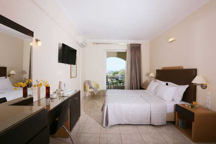 Kahden hengen huone parvekkeella. Parivuode tai kaksi yhden hengen sänkyä. Mahdollisuus saada lisävuode yhden hengen vuoteeseen tai kokoontaitettavaan sänkyyn. Maksuton wifi, ilmastointi ja tallelokero. Jääkaappi. Vedenkeitin. Tv kansainvälisillä kanavilla. Kylpytakit ja tossut. Hiustenkuivain. Kylpyamme tai suihku ja wc. Alle 2-vuotiaat lapset lasketaan lisävuoteella majoittuviksi henkilöiksi.