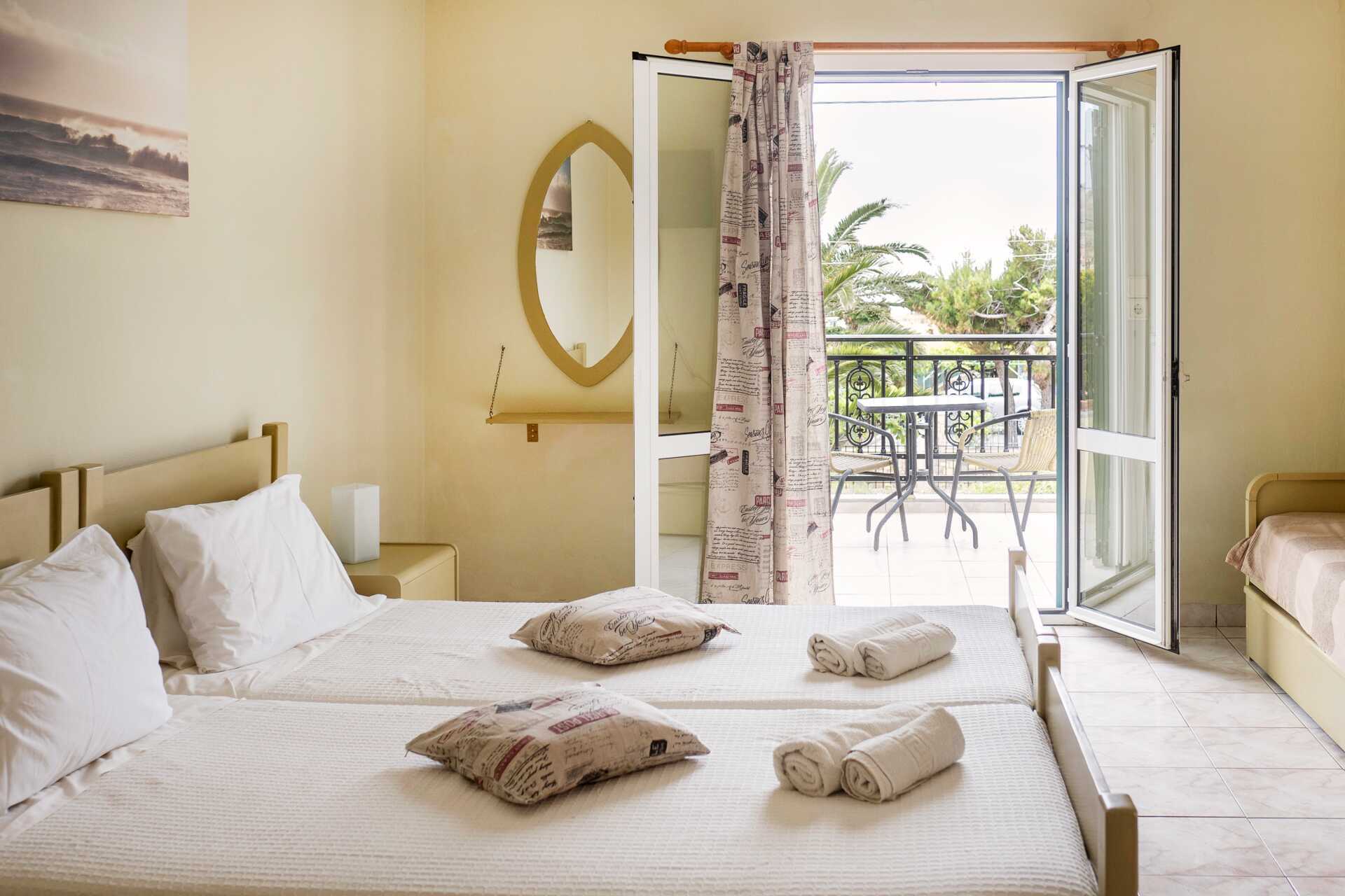 Suuri yhden hengen huone parvekkeella. Yhdistetty makuuhuone ja minikeittiö. Parivuode tai kaksi yhden hengen sänkyä. Lisävuodemahdollisuus vuodesohvasta. Minikeittiössä on keittolevyt, jääkaappi ja yksinkertainen keittiövarustus. Maksuton wifi, ilmastointi ja tallelokero. Tv paikallisilla kanavilla. Kylpyamme tai suihku ja wc. Siivous 6 krt/viikko.