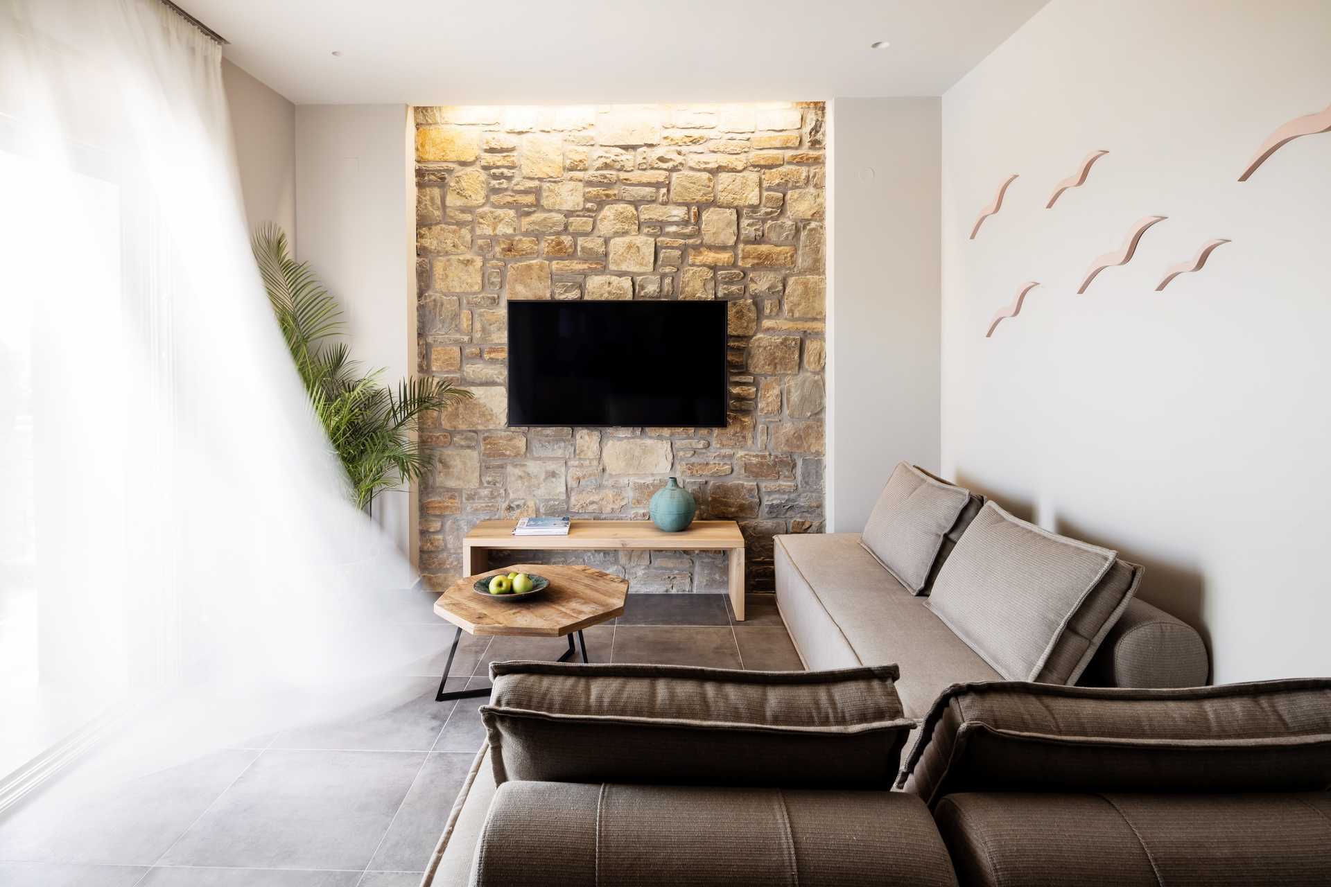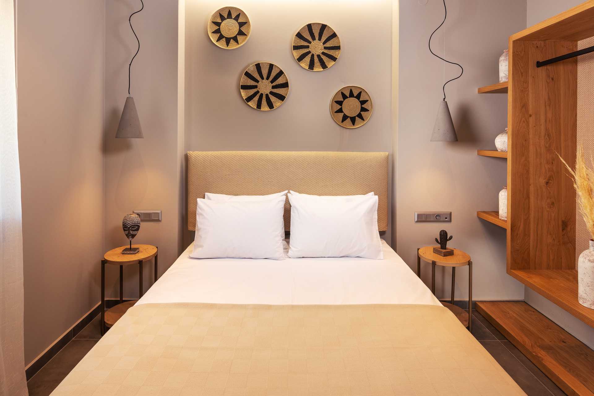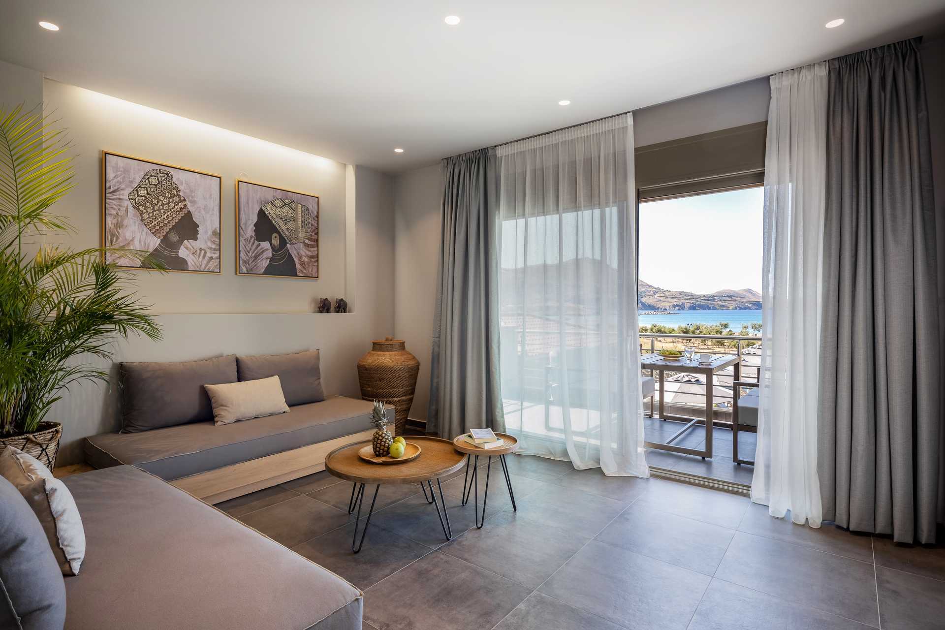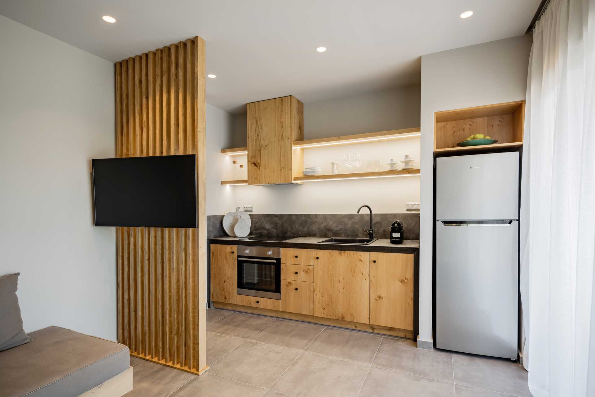 Kaksiossa on parveke, maaparveke tai maaterassi. Kaikissa huoneistoissa parvekkeella tai maaparvekkeella on merinäköalalla. Kaikissa huoneistoissa on yksilöllinen sisustus. Makuuhuone sekä yhdistetty olohuone ja minikeittiö. Parivuode. Lisävuodemahdollisuus vuodesohvalla. Minikeittiö, jossa jääkaappi, keittolevyt, pakastin, kahvinkeitin ja keittiön perusvarusteet. Maksuton wifi, ilmastointi ja tallelokero. Smart TV. Hiustenkuivain. Kylpyhuone kylpyammeella ja wc. Siivous 6 krt/viikko.