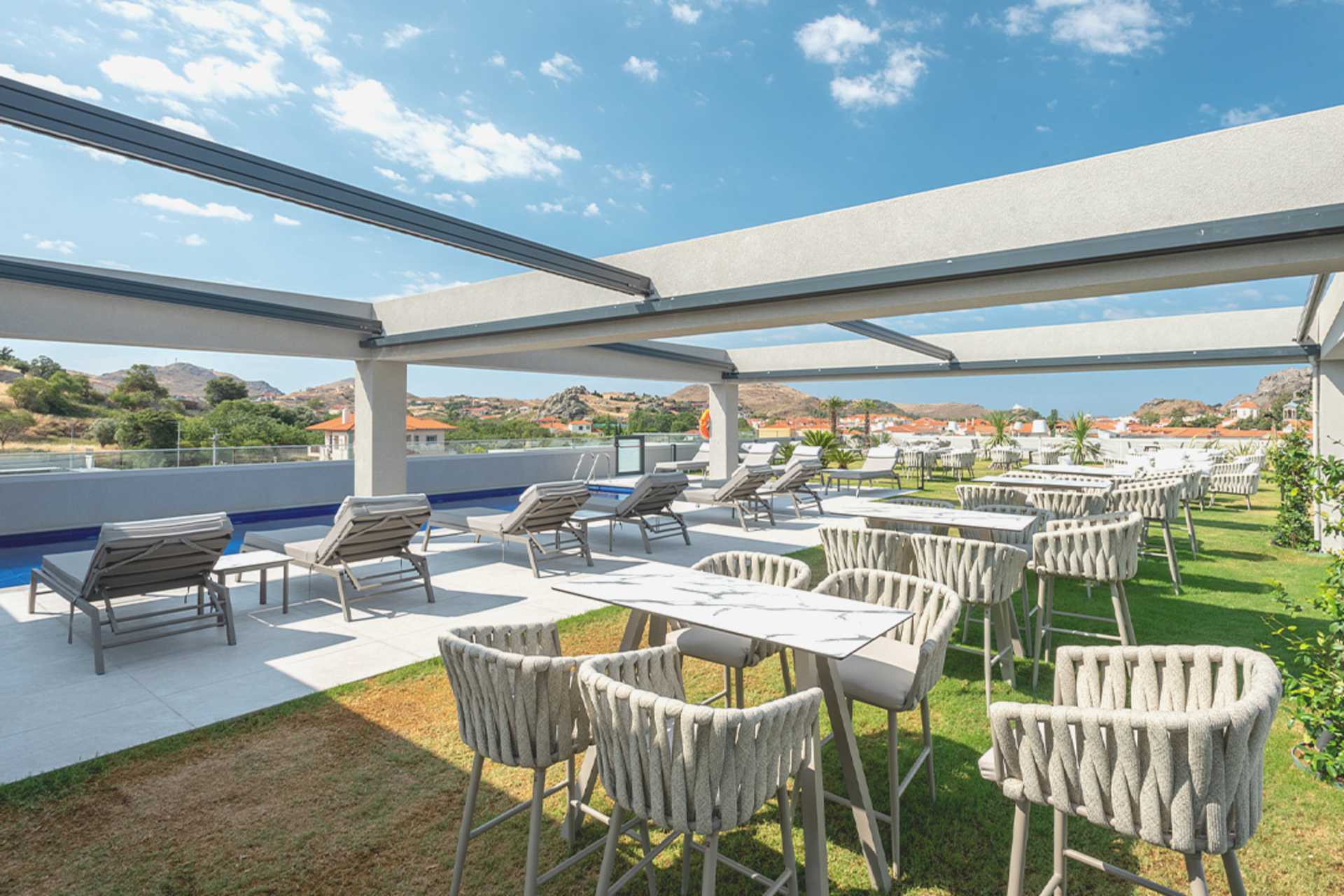 Hotelli Grand Patelli on skandinaaviseen tyyliin rakennettu helmi, joka sijaitsee keskeisellä paikalla Myrinassa. Lähde aamukävelylle ja katso, kuinka varhaiset auringonsäteet putoavat Myrinan linnaan tai katso kalastusalusten saapuvan päivän saaliin kanssa satamaan. Iltaisin voit nauttia syötävää Myrinan tavernoissa ja ravintoloissa. Nauti hotellin kattoterassista ja pulahda uimaan drinkin kera auringon laskiessa.