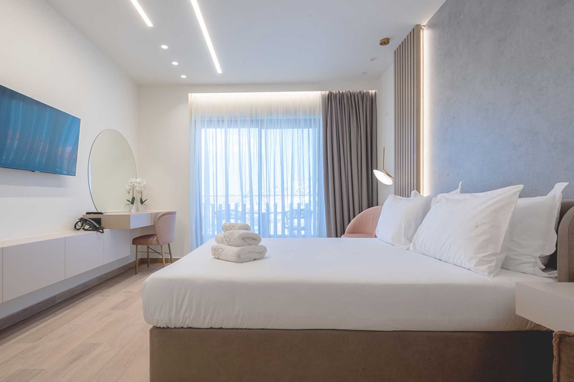 Kahden hengen huone parvekkeella tai maaterassilla. Yksi parivuode tai kaksi erillistä vuodetta. Lisävuodemahdollisuus vuodesohvasta. Jääkaappi. Vedenkeitin, kahvia ja teetä. Maksuton wifi, ilmastointi ja tallelokero. Tv kansainvälisillä kanavilla. Tohvelit. Hiustenkuivain. Kylpyhuoneessa suihku ja wc. Siivous 6 krt/viikko.