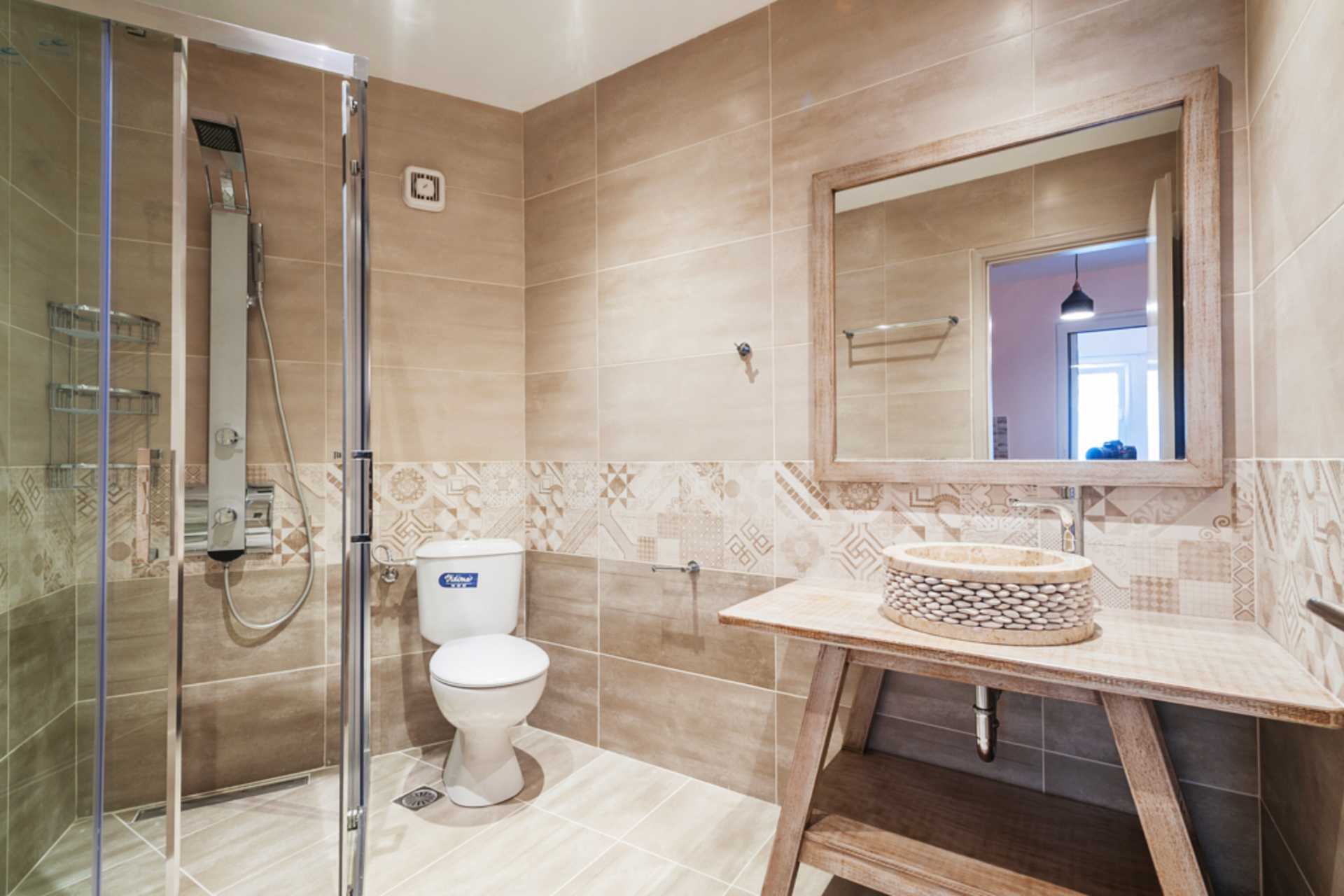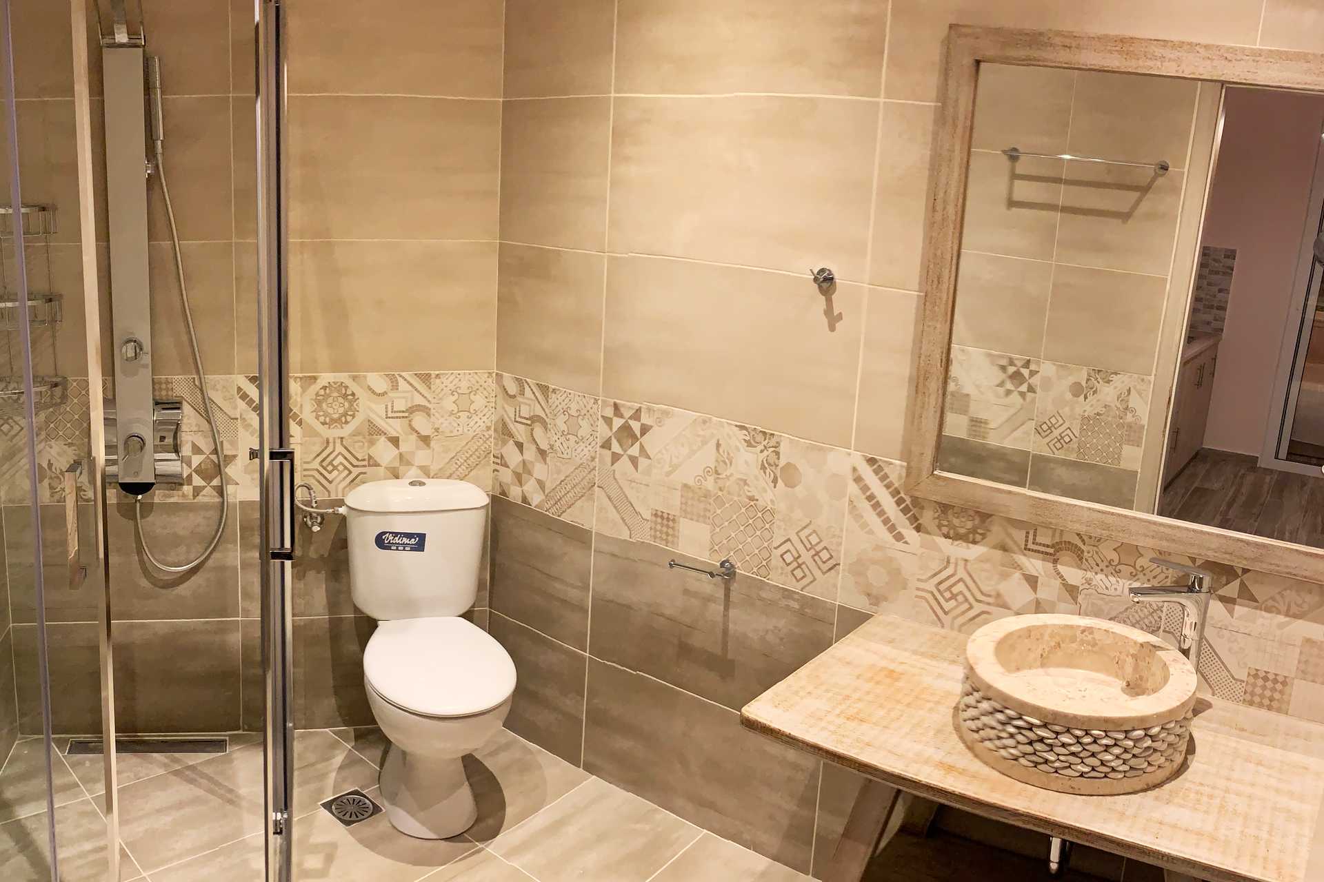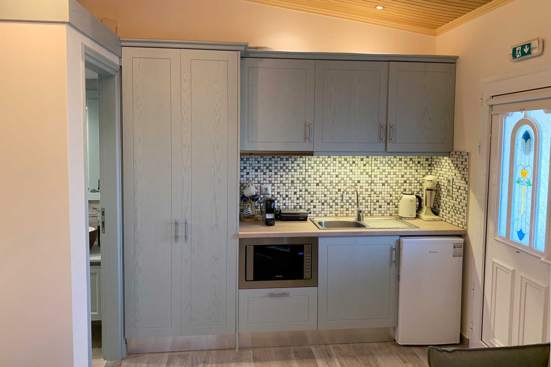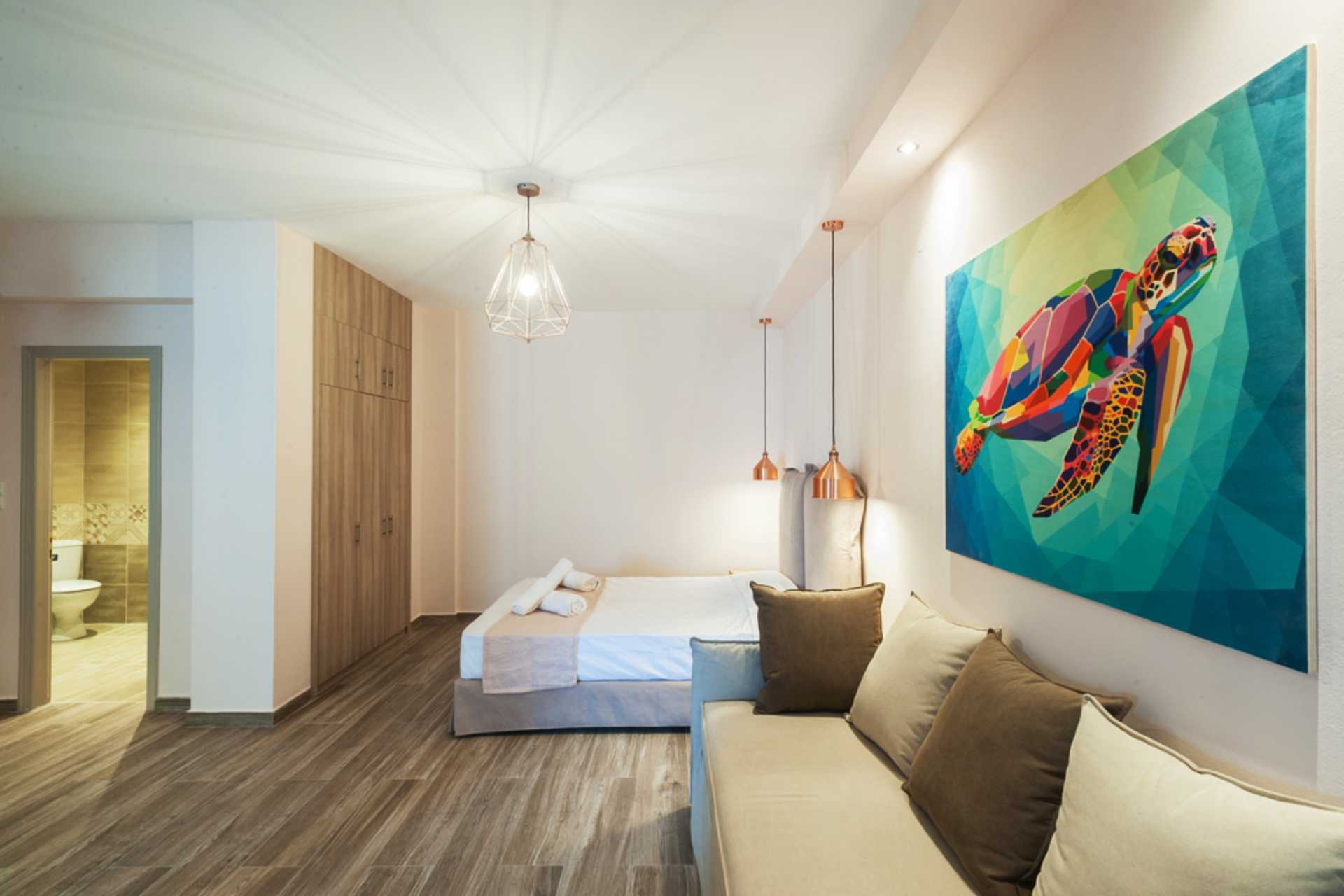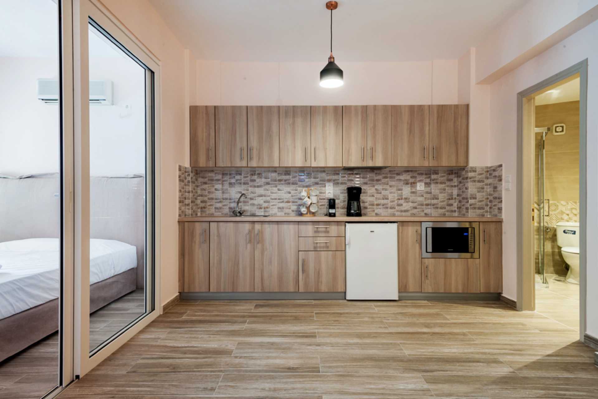 Yksiö parvekkeella tai terassilla. Yhdistetty makuuhuone ja minikeittiö. Parivuode. Lisävuodemahdollisuus vuodesohvasta. Minikeittiö, jossa jääkaappi, keittolevyt, kahvinkeitin, espressokeitin, vedenkeitin, mikro ja yksinkertainen keittiövarustus. Maksuton ilmastointi ja wifi. Tv kansainvälisillä kanavilla. Hiustenkuivain. Kylpyhuoneessa suihku ja wc. Siivous 6 krt/viikko.