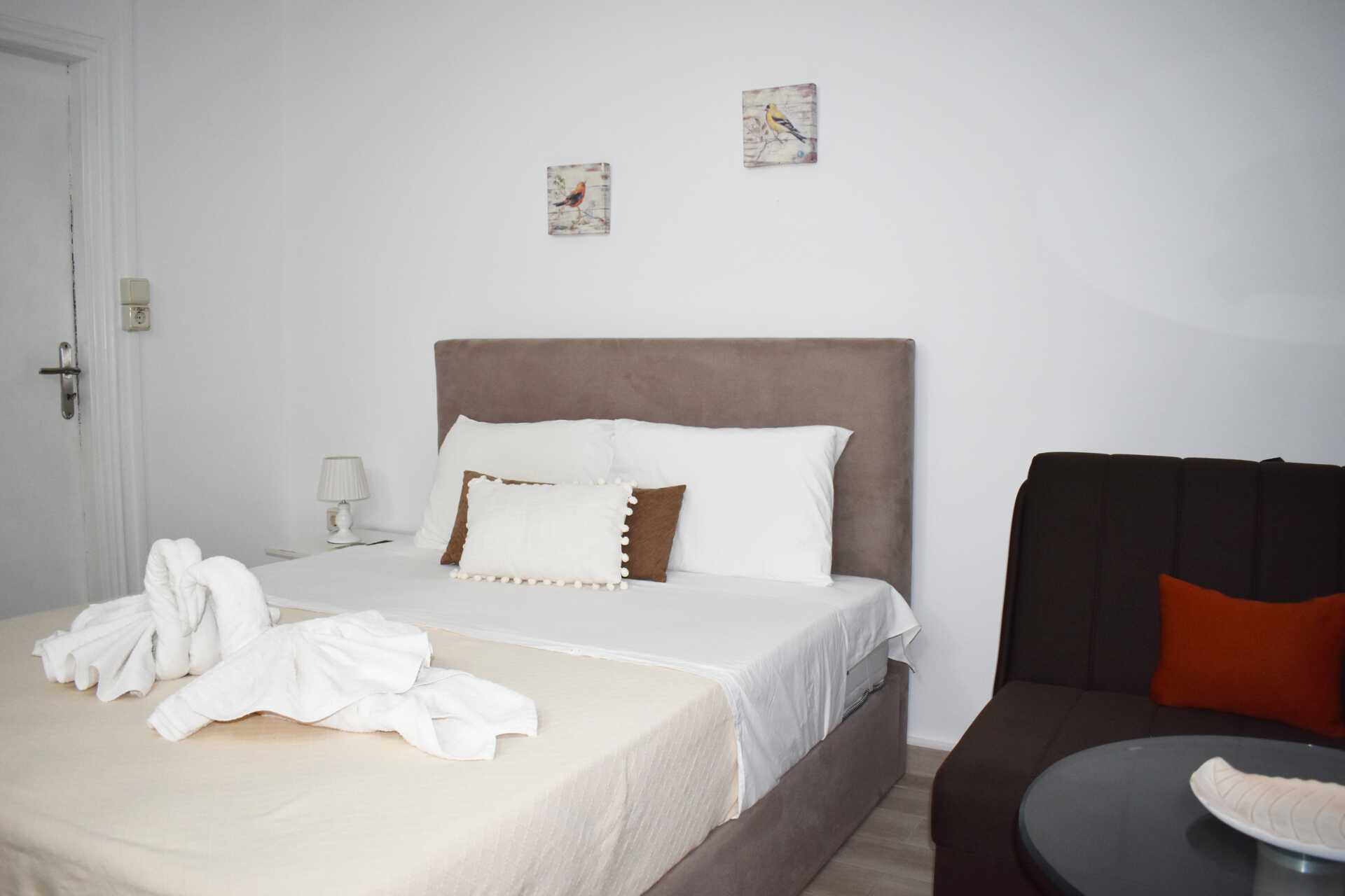 Yksiössä on parveke tai terassi. Makuuhuone yhdistetty minikeittiöön. Parivuode. Lisävuodemahdollisuus vuodesohvaan tai yhden hengen vuoteeseen. Minikeittiössä yksi tai kaksi keittolevyä ja uuni, jääkaappi ja yksinkertainen keittiövarustus. Maksuton wifi ja ilmastointi. Tv paikallisilla kanavilla. Kylpyhuoneessa suihku ja wc. Siivous 7 krt/viikko.
