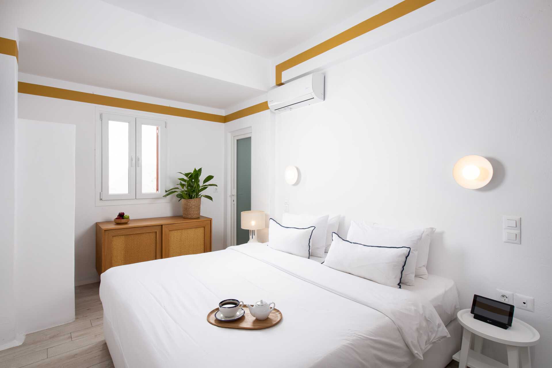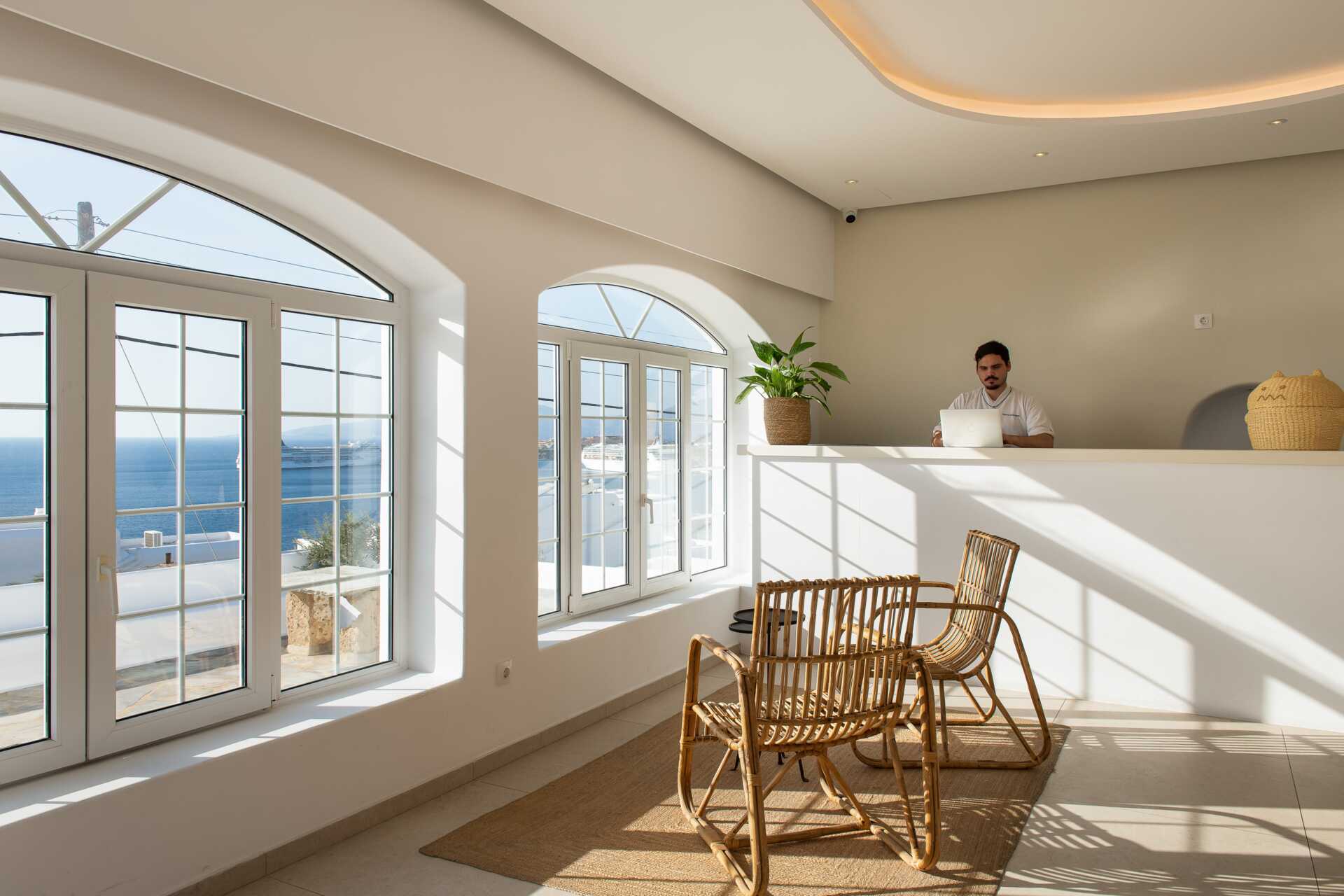 Hotellissa on kalkitut seinät ja modernit sisustusyksityiskohdat. Hotelli tarjoaa kykladilaista arkkitehtuuria, joka luo harmonisen ja rentouttavan ympäristön.