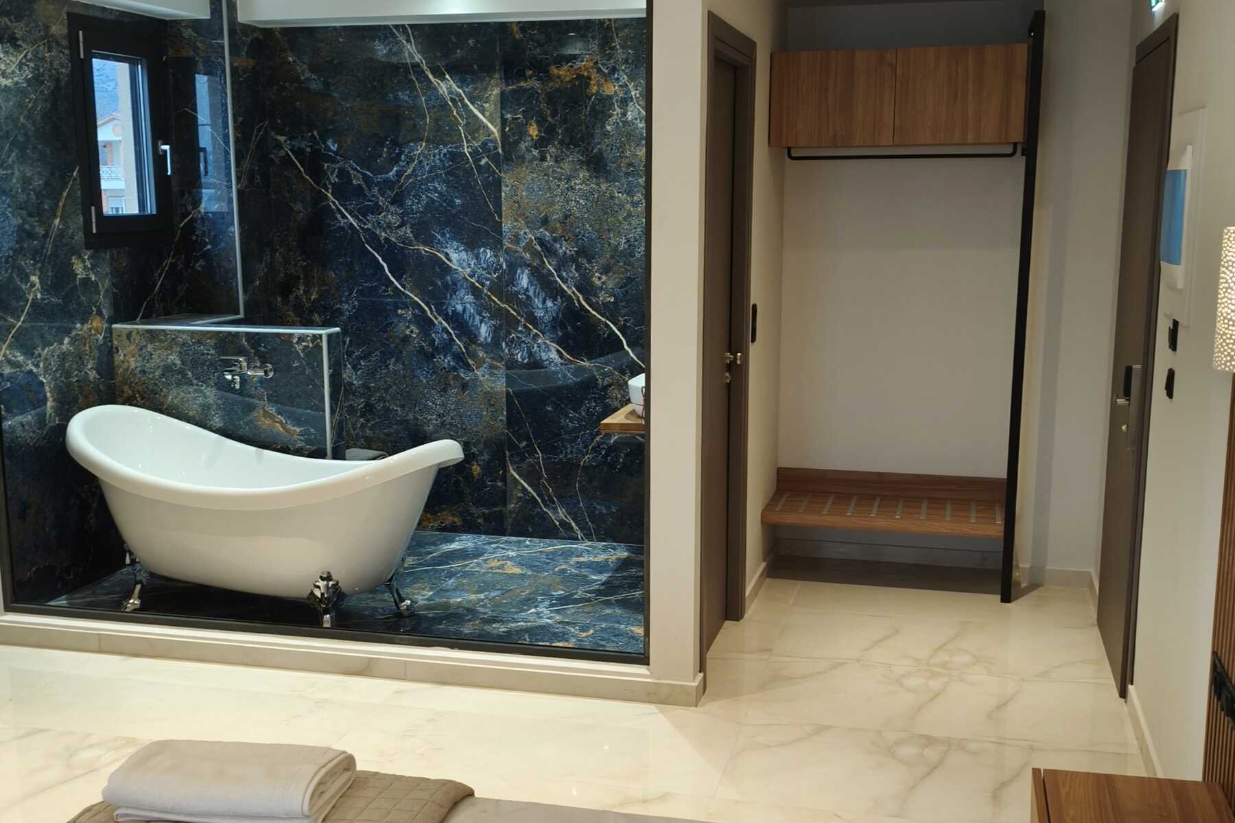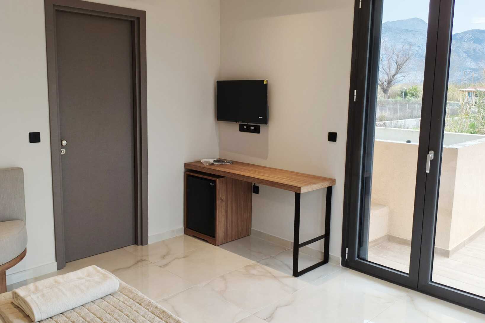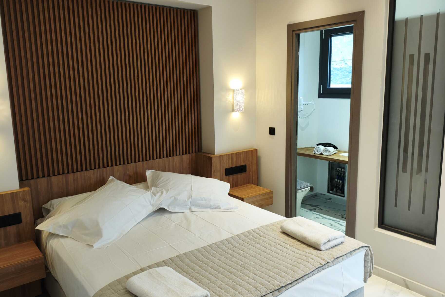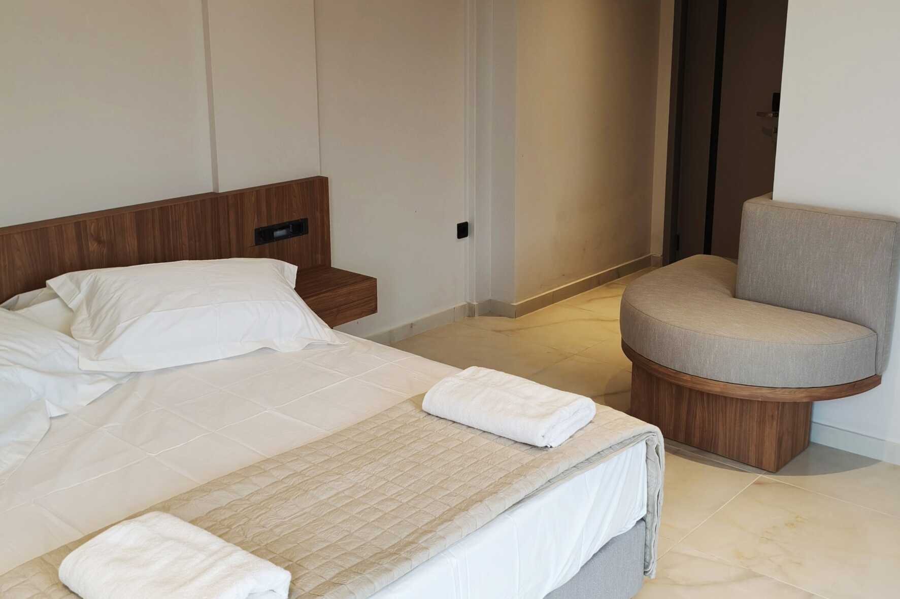 Kahden hengen huone parvekkeella, osassa merinäköala. Parivuode. Joissakin huoneissa on mahdollisuus lisävuoteeseen yhden hengen vuoteessa. Maksuton wifi, ilmastointi ja tallelokero. Jääkaappi. Tv paikallisilla kanavilla. Amme tai suihku ja wc. Siivous 5 krt/viikko.