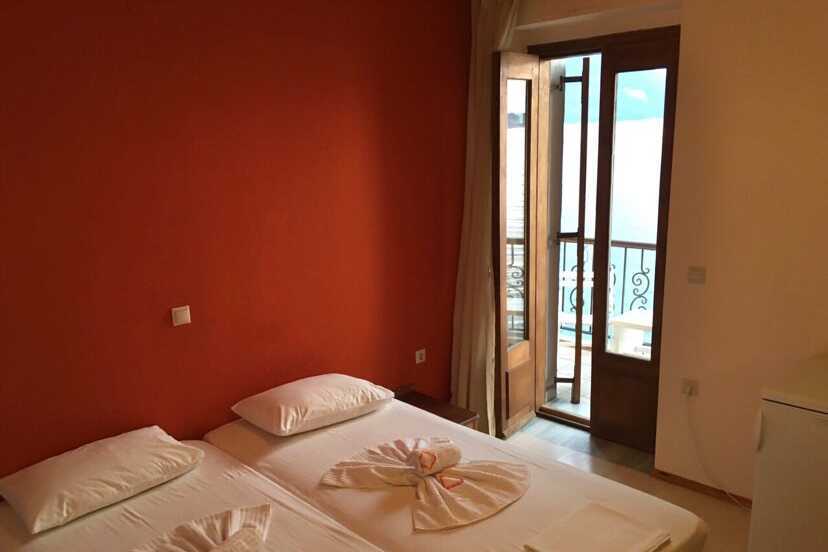 Kahden hengen huone parvekkeella ja merinäköalalla. Parivuode. Maksuton wifi, ilmastointi ja tallelokero. Jääkaappi. Kylpyhuoneessa suihku ja wc. Siivous 5 krt/viikko.