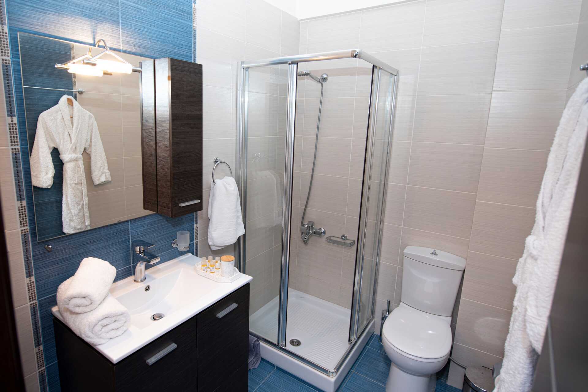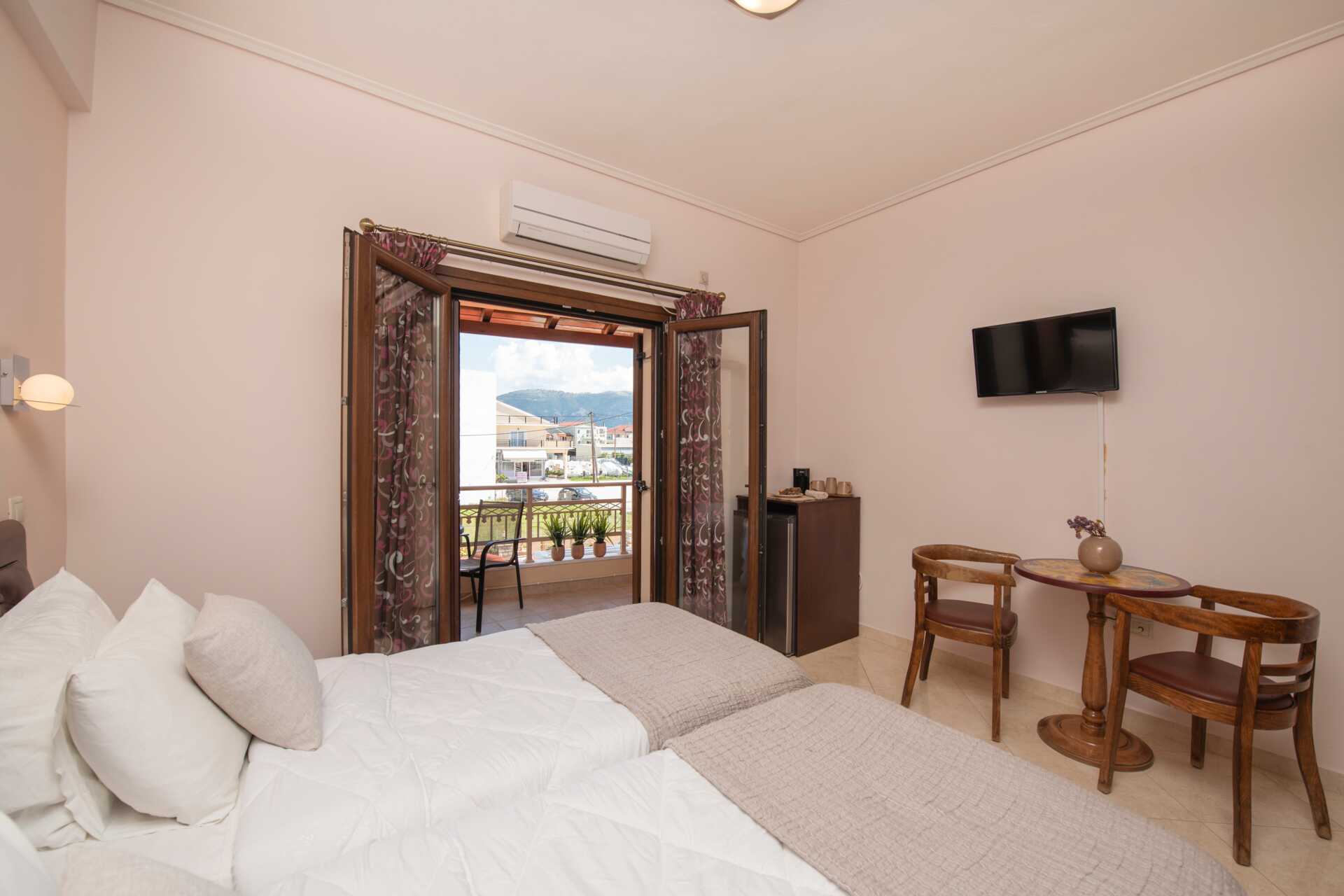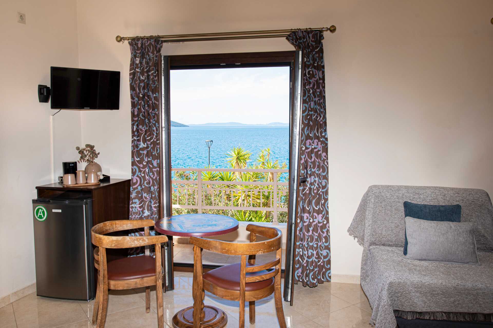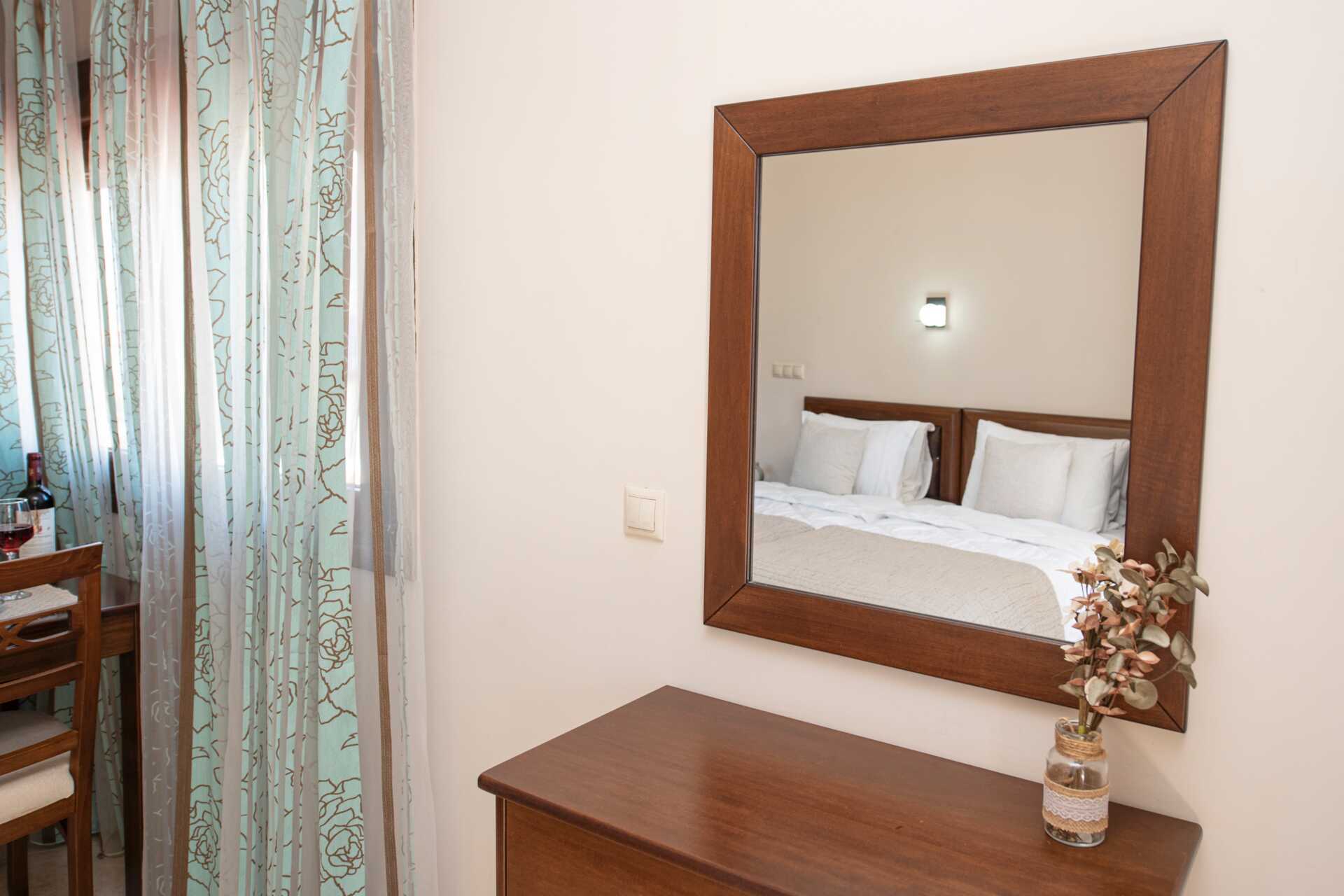 Yksiö parvekkeella ja rajoitetulla merinäköalalla. Yhdistetty makuuhuone ja minikeittiö. Parivuode tai kaksi yhden hengen sänkyä. Lisävuodemahdollisuus vuodesohvasta. Minikeittiössä keittolevyt, uuni, jääkaappi pakastelokerolla, vedenkeitin, kahvinkeitin ja yksinkertainen keittiövarustus. Kahvinkeitin - kaksi kapselia päivässä sisältyy hintaan. Maksuton wifi, ilmastointi ja tallelokero. Tv kansainvälisillä kanavilla. Kylpytakit. Kylpyhuoneessa suihku ja wc. Siivous 6 krt/viikko. Alle 2-vuotiaat lapset lasketaan lisävuoteella majoittuviksi henkilöiksi.