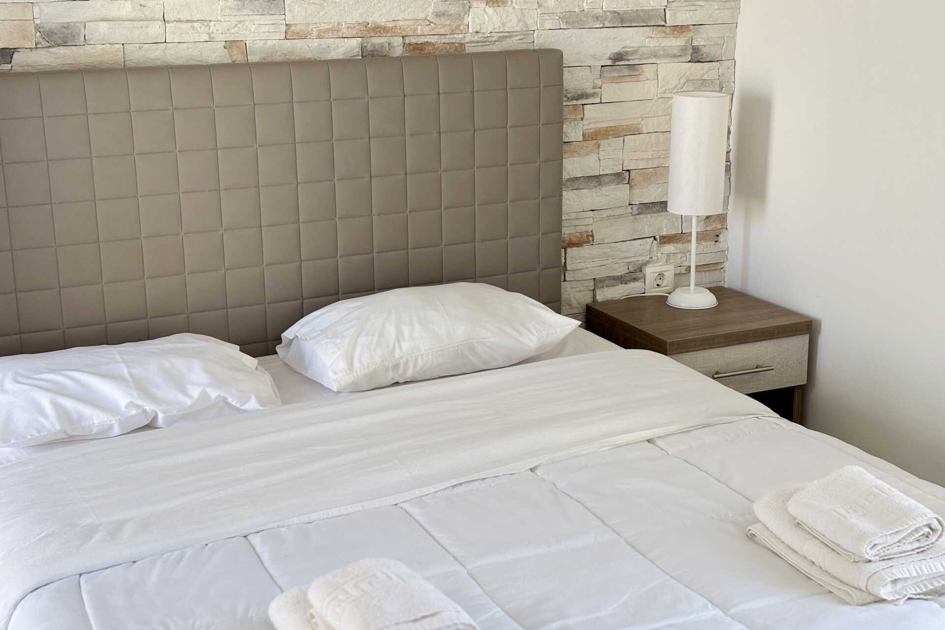 Kolmen hengen huoneita, joissa on parveke tai terassi. Parivuode tai kaksi yhden hengen vuodetta. Maksuton wifi ja ilmastointi. Tallelokero lisämaksusta. Jääkaappi. Tv kansainvälisillä kanavilla. Hiustenkuivain. Suihku ja wc. Siivous 7 krt/viikko.