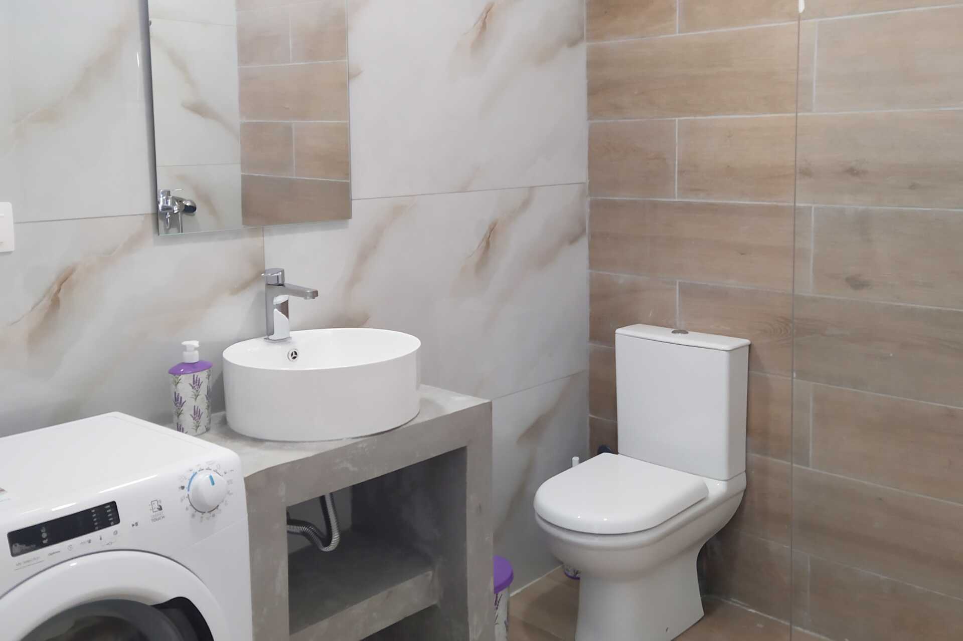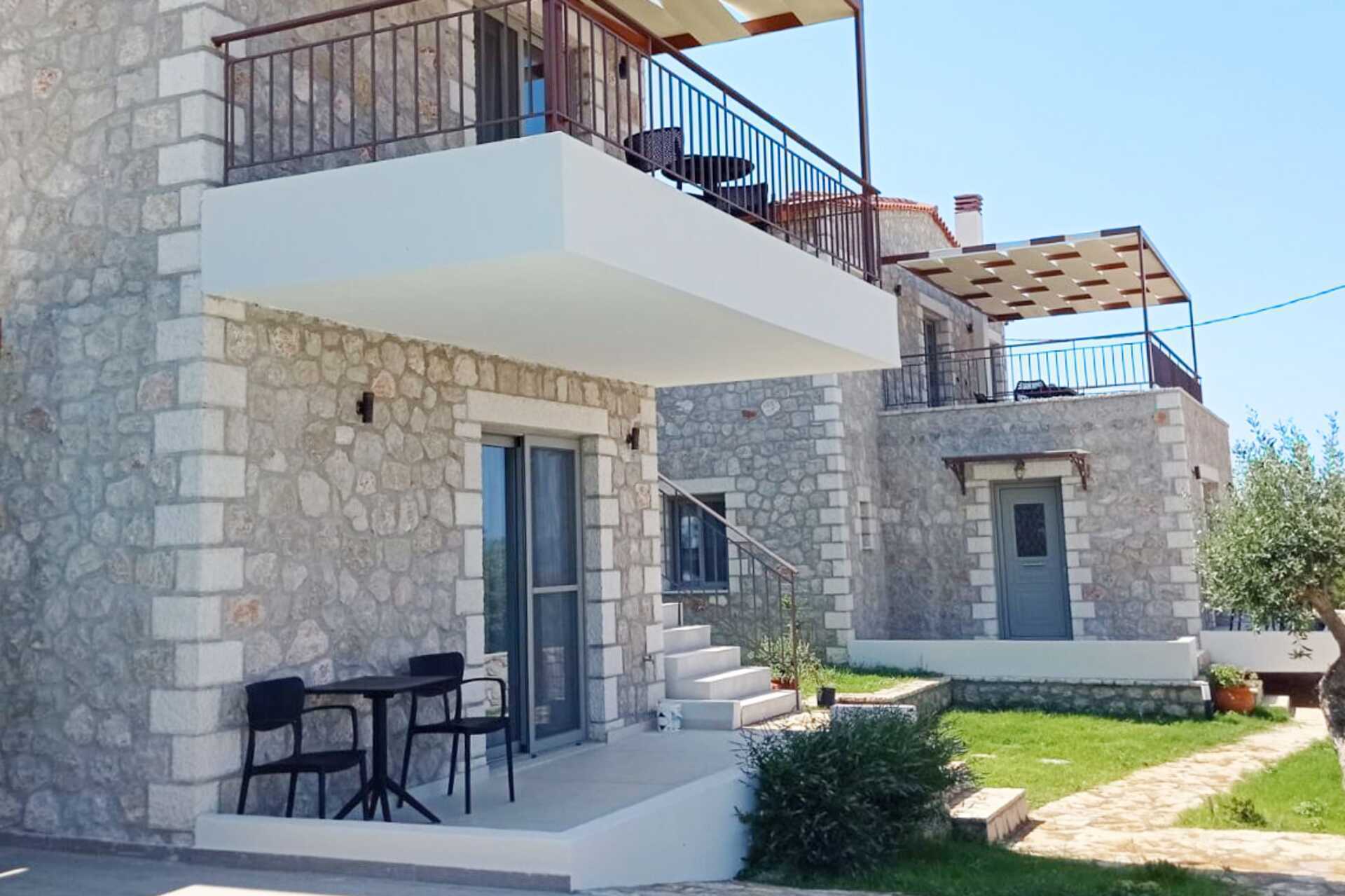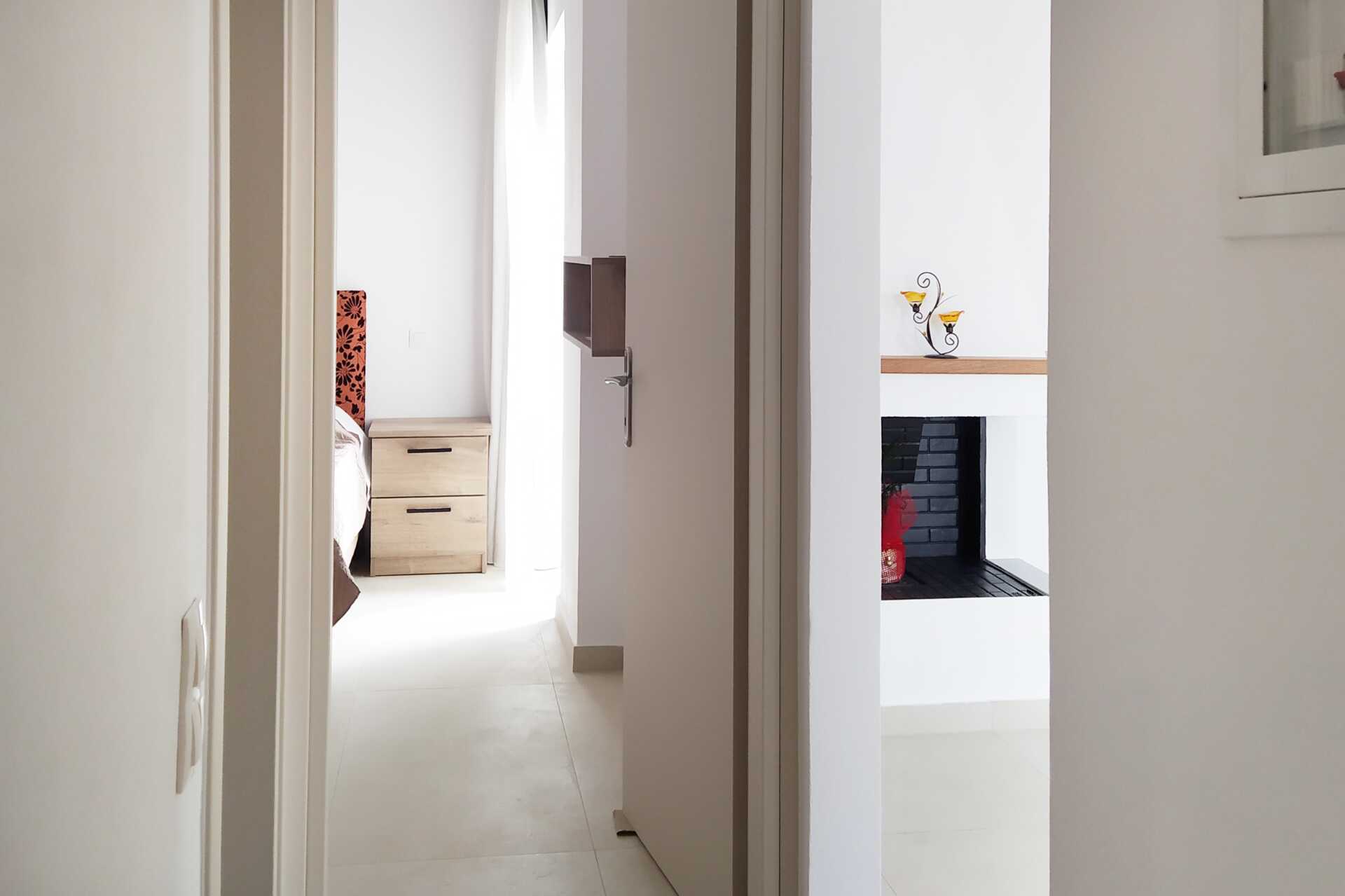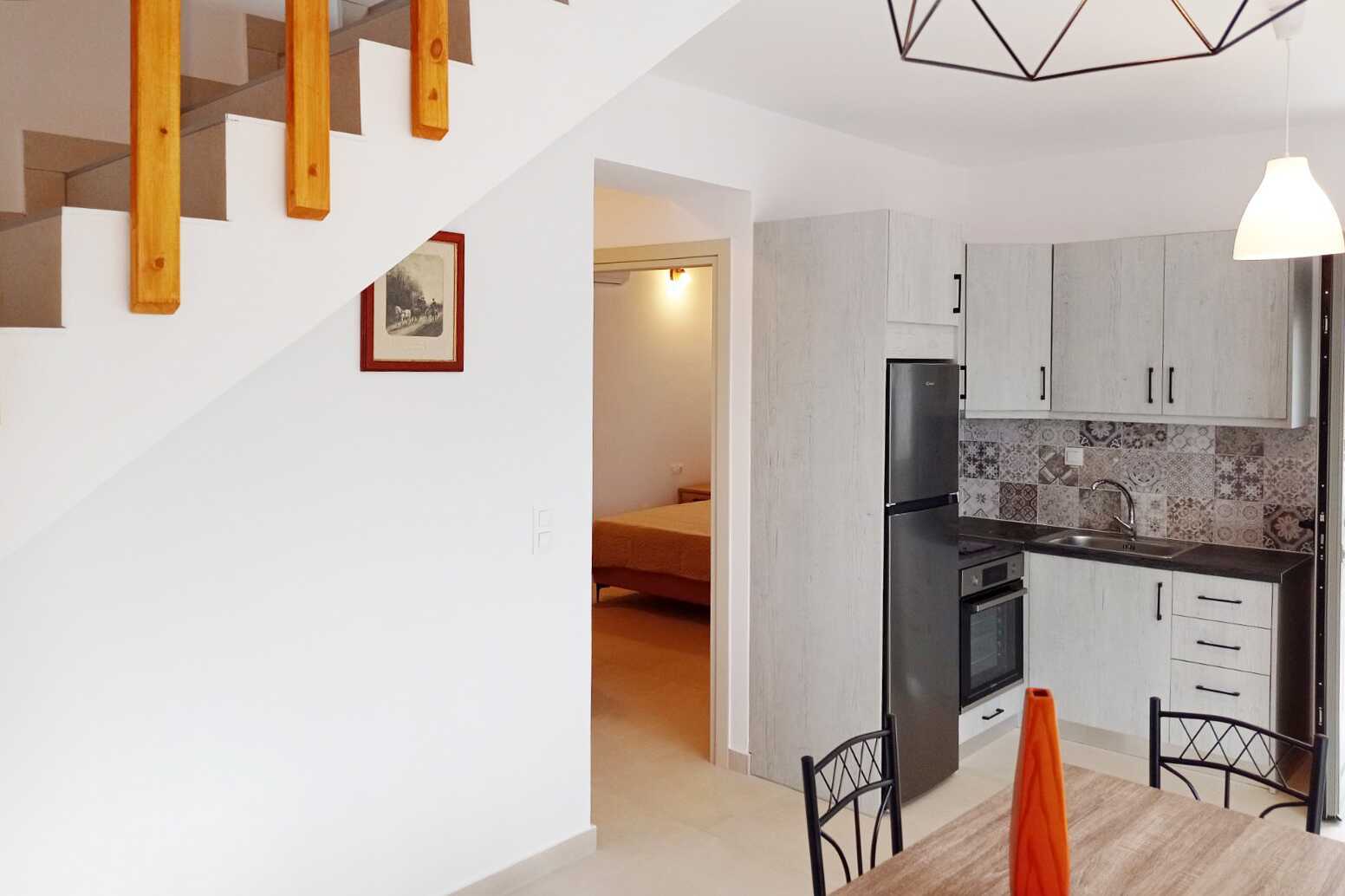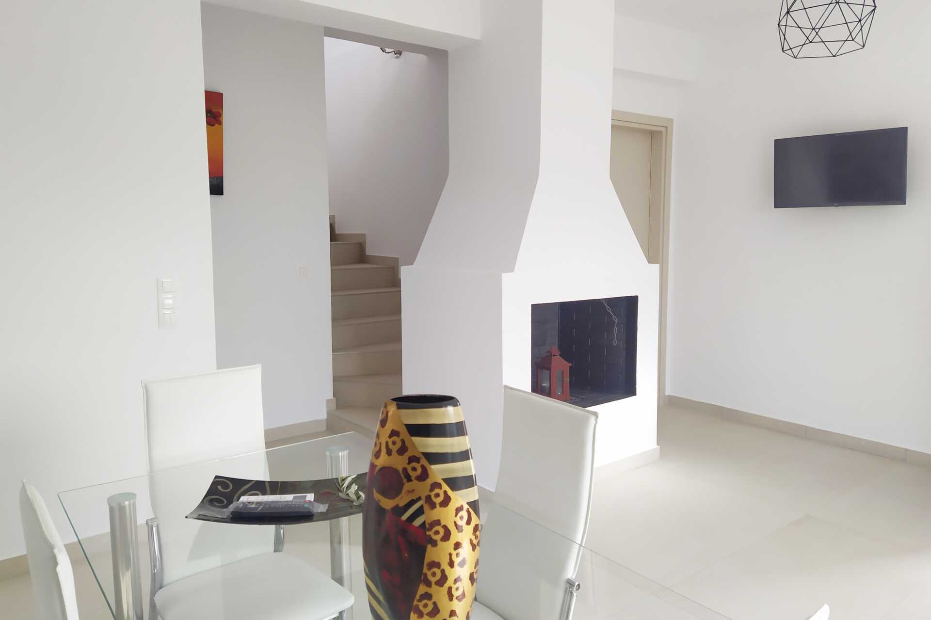 Neljän huoneen villa maaterassilla ja merinäköalalla. Huvila on kahdessa kerroksessa. Makuuhuone sekä yhdistetty olohuone ja minikeittiö. Sisäänkäyntikerroksessa on kaksi makuuhuonetta, joissa kummassakin on parivuode, sekä yhdistetty olohuone, jossa on takka, minikeittiö ja kylpyhuone, jossa on hiustenkuivaaja, suihku ja wc. Yläkerrassa on makuuhuone, jossa on parisänky, sekä kylpyhuone, jossa on pesukone, hiustenkuivaaja, suihku ja wc. Minikeittiö, jossa jääkaappi ja pakastin, liesi, voileipägrilli, kahvinkeitin, vedenkeitin ja peruskeittiövälineet. Maksuton wifi, ilmastointi ja tallelokero. Tv kansainvälisillä kanavilla. Silitysrauta ja -lauta. Siivous 3 krt/viikko.
