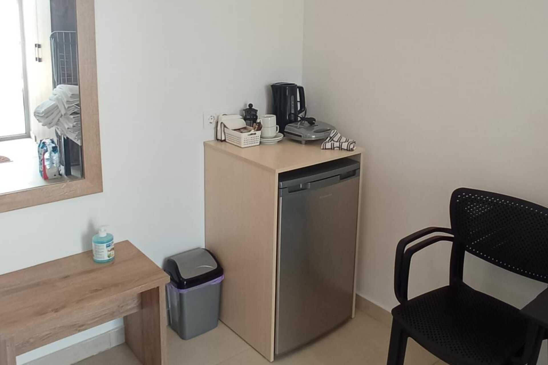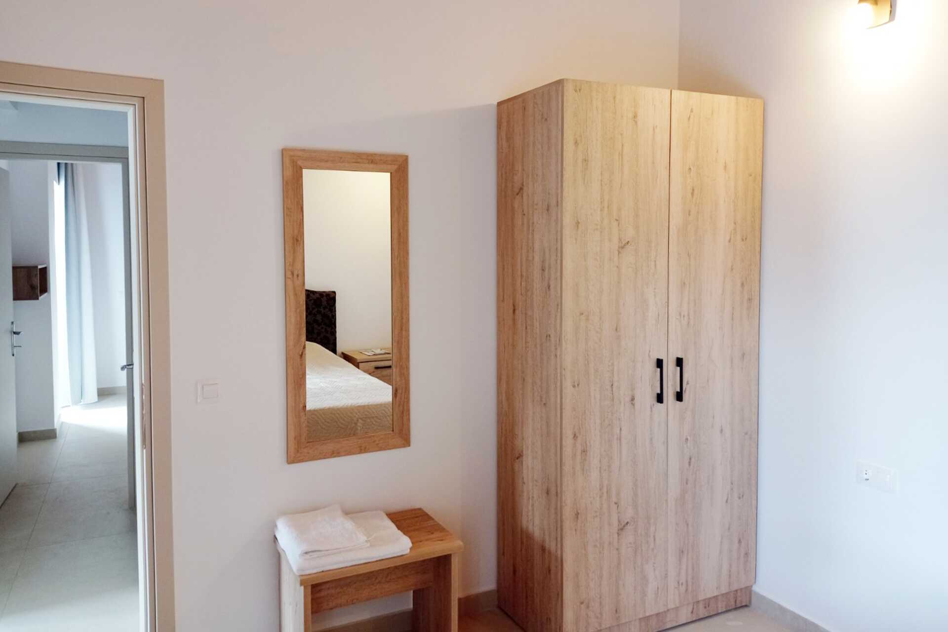 Kahden hengen huone parveke tai maaterassi ja merinäköala. Huone sijaitsee yhteisen uima-altaan vieressä. Makuuhuone hengen parivuode. Jääkaappi ja vedenkeitin. Maksuton wifi ja ilmastointi. Tv kansainvälisillä kanavilla. Silitysrauta ja -lauta. Hiustenkuivain. Kylpyhuoneessa suihku ja wc. Siivous 3 krt/viikko.