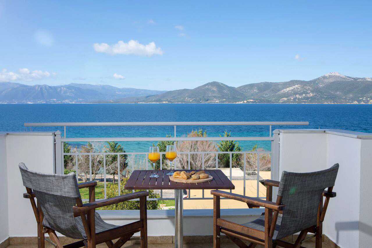 Kahden hengen huone, jossa on pohjakerroksen terassi ja rajoitettu merinäköala tai parveke ja merinäköala. Parivuode. Lisävuodemahdollisuus yhden hengen sängystä. Maksuton wifi, ilmastointi ja tallelokero. Pieni jääkaappi. Vedenkeitin, kahvia ja teetä. Tv kansainvälisillä kanavilla. Kylpyhuoneessa suihku ja wc. Siivous 6 krt/viikko.