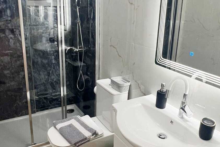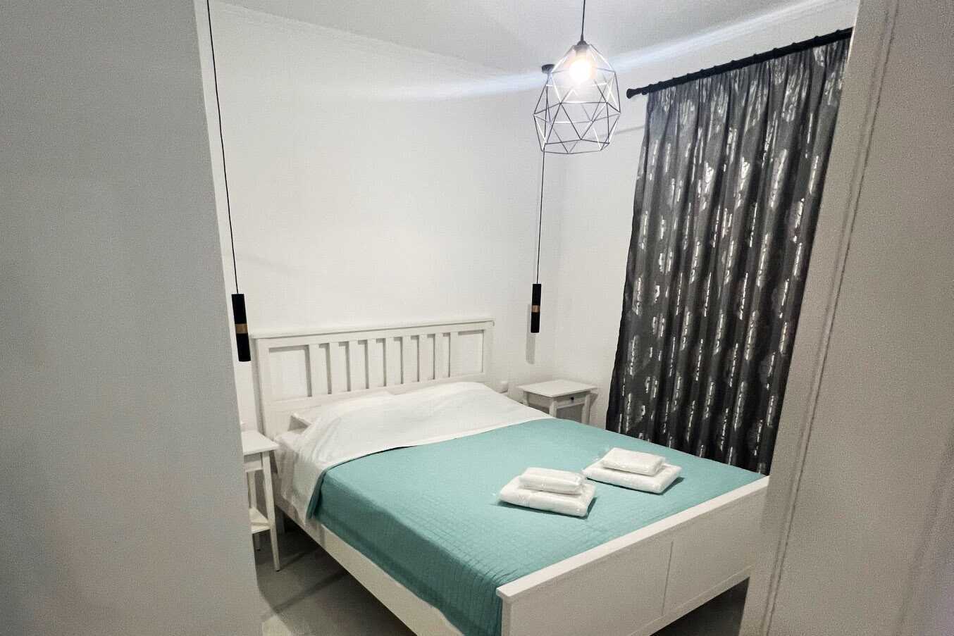 Kolmio parvekkeella. Kaksi makuuhuonetta sekä yhdistetty olohuone ja minikeittiö. Yhdessä makuuhuoneessa on parivuode ja toisessa makuuhuoneessa kaksi erillistä vuodetta. Minikeittiössä keittolevyt, uuni, jääkaappi ja yksinkertainen keittiövarustus. Maksuton wifi, ilmastointi ja tallelokero. Pesukone. Suihku ja wc. Siivous 5 krt/viikko.