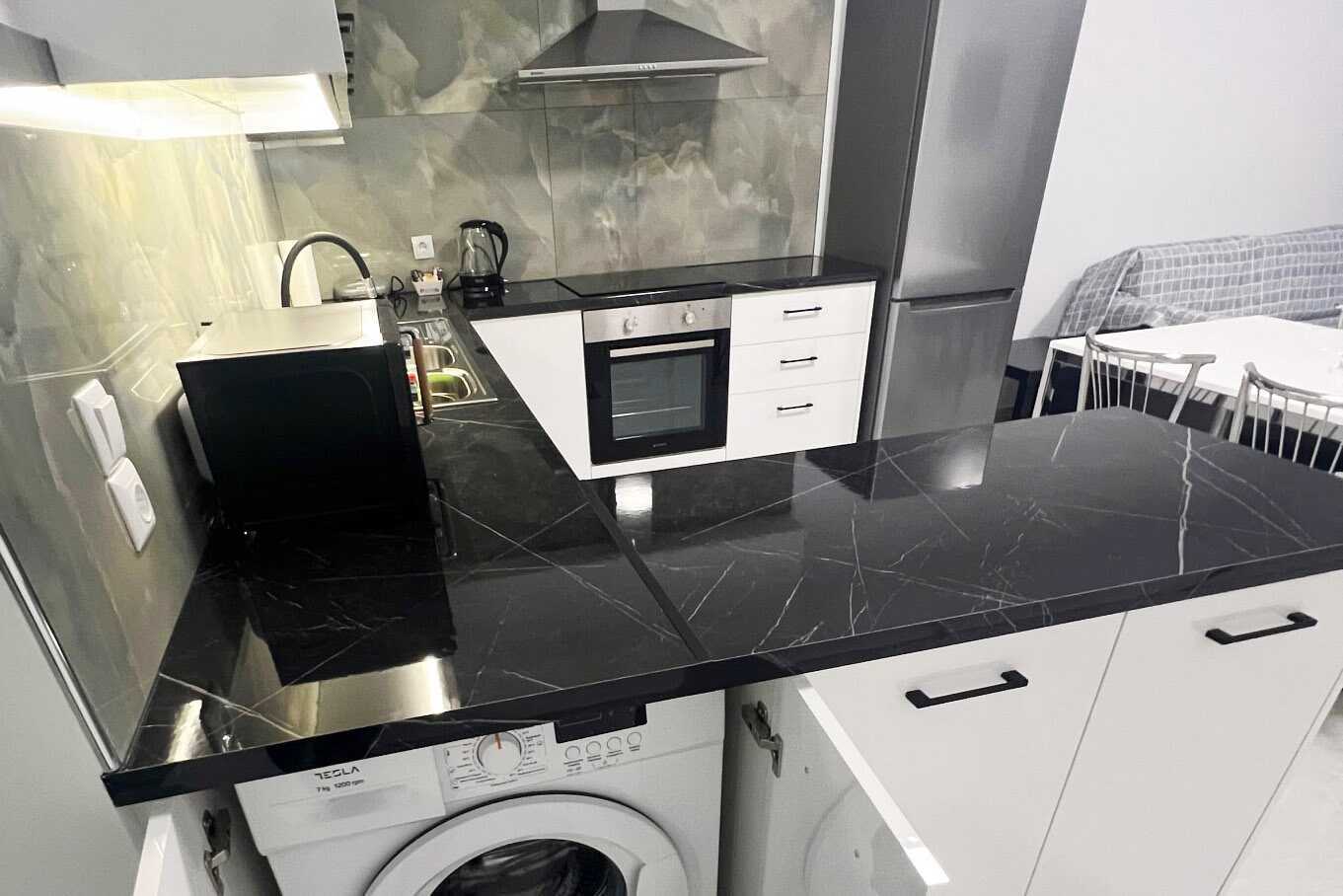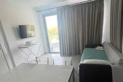 Kaksio parvekkeella. Makuuhuone ja yhdistetty olohuone ja minikeittiö. Parivuode tai kaksi yhden hengen sänkyä. Lisävuodemahdollisuus vuodesohvasta. Minikeittiössä keittolevyt, uuni, jääkaappi ja yksinkertainen keittiövarustus. Maksuton wifi, ilmastointi ja tallelokero. Pesukone. Suihku ja wc. Siivous 5 krt/viikko.