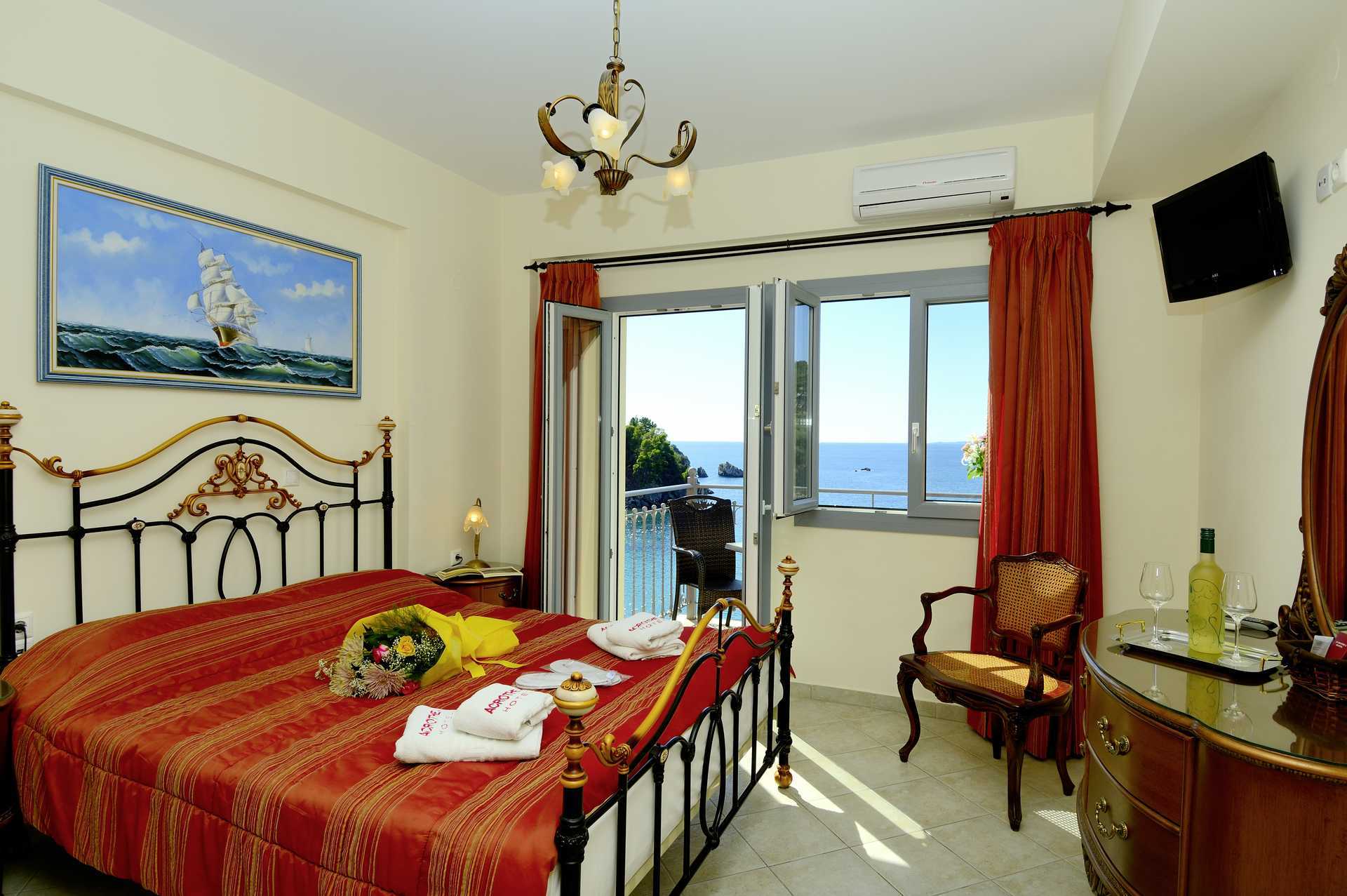 Kahden hengen huone, jossa parveke tai terassi, osassa rajoitettu merinäköala. Parivuode tai kaksi yhden hengen sänkyä. Maksuton wifi, ilmastointi ja tallelokero. Jääkaappi. Vedenkeitin. Tv paikallisilla kanavilla. Hiustenkuivain. Kylpyhuoneessa kylpyamme tai suihku ja wc. Siivous 7 krt/viikko.