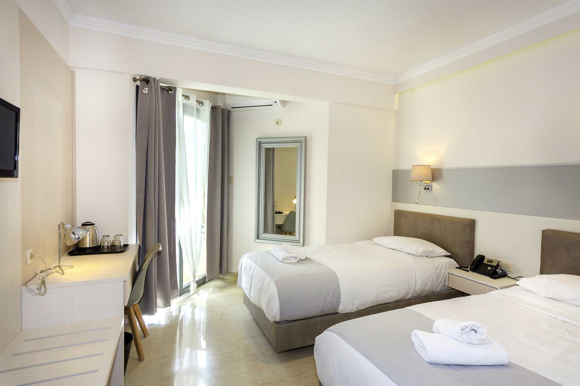 Valoisia kolmen huoneen sviittejä, jotka sijaitsevat päärakennuksessa. Sviitissä kaksi makuuhuonetta, joissa parivuoteet. Olohuone. Yksinkertainen minikeittiö, jossa jääkaappi, vedenkeitin, leivänpaahdin ja yksinkertainen keittiövarustelu. Tv kansainvälisillä kanavilla. Maksuton wifi, ilmastointi ja tallelokero. Hiustenkuivain. Suihku ja wc. Tilava parveke tai terassi allasnäkymällä. Siivous 7 krt/viikko.